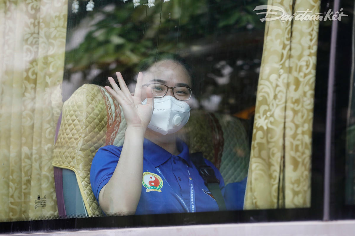 Giảng viên, cán bộ, sinh viên Học viện Y dược học Cổ truyền Việt Nam trong buổi lễ xuất quân lên đường vào TP Hồ Chí Minh sáng ngày 20/7. Ảnh: Quang Vinh. TS. BS Trần Anh Tuấn, Trưởng khoa Nội nhi, BV Tuệ Tĩnh, Giảng viên, Bí thư Đoàn thanh niên Học viện Y dược học Cổ truyền Việt Nam - Trưởng đoàn nhận nhiệm vụ. Ảnh: Quang Vinh. Học viện Y dược học Cổ truyền Việt Nam tặng giấy khen cho giảng viên, cán bộ, các em sinh viên đã từng tham gia chống dịch tại Bắc Giang trước khi lên đường vào TP Hồ Chí Minh tiếp tục thực hiện nhiệm vụ. Ảnh: Quang Vinh. Các giảng viên, các em sinh viên chuẩn bị hành trang lên đường. Ảnh: Quang Vinh. Các em sinh viên chuẩn bị sẵn cho bản thân một chút đồ ăn và các loại thuốc cần thiết. Hành trang lên đường mỗi bạn chỉ vọn vẹn 1 vali cho chuyến đi dài, giản tiện đồ dùng cá nhân nhất có thể. Ảnh: Quang Vinh. Đoàn nhận được sự tài trợ của một số cá nhân, tổ chức về các đồ dùng thiết yếu để mang theo. Ảnh: Quang Vinh. Đoàn quân lên đường với sự nhiệt huyết của tuổi trẻ. Ảnh: Quang Vinh. Các thầy cô bắt tay, chúc giảng viên và sinh viên của Học viện lên đường bình an, hoàn thành thật tốt nhiệm vụ được giao. Ảnh: Quang Vinh. Những gương mặt trẻ, những nụ cười của các em sinh viên trước giờ lên đường. Ảnh: Quang Vinh. Những cái vẫy tay chào nhau trước giờ xe lăn bánh. "Lên đường bình an nhé" - lời dặn dò đơn giản nhưng đầy ý nghĩa trong khoảnh khắc này. Ảnh: Quang Vinh.