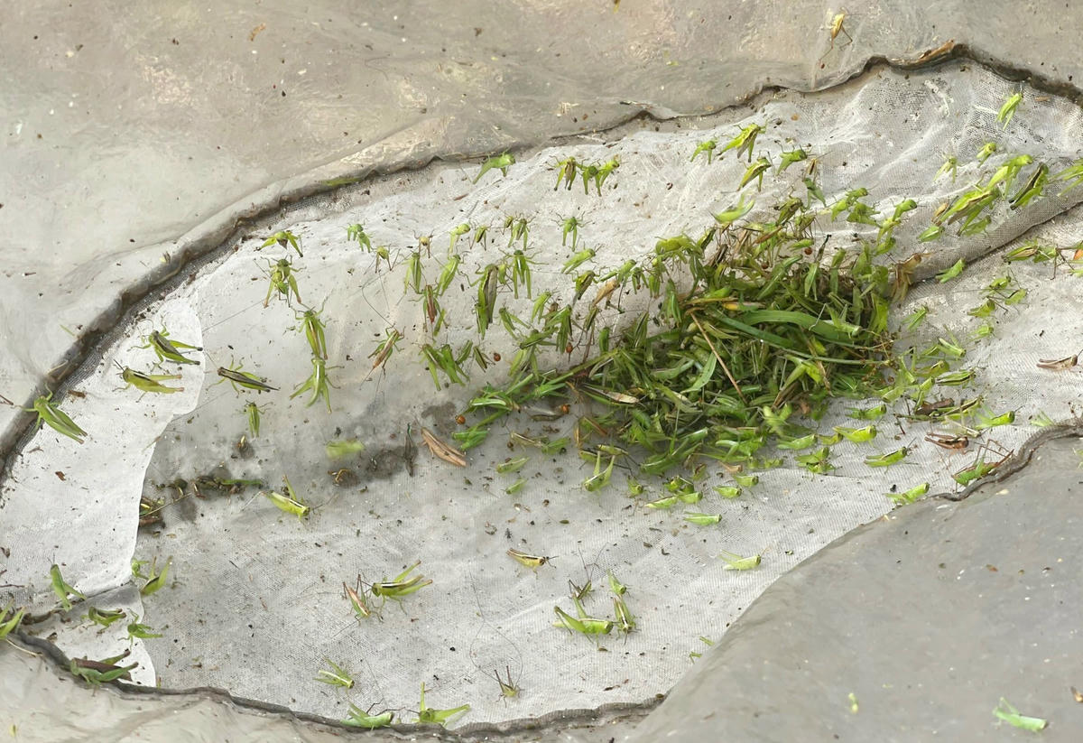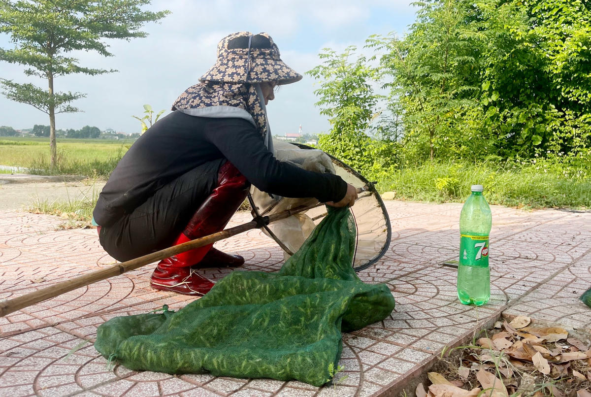 Chỉ cần một chiếc vợt sâu lòng có cán dài, những cuộn lưới đan dày có khổ rộng 2-4m cùng bình nước mang bên người, một số người dân từ Nghệ An vượt hơn 100km vào Hà Tĩnh để săn cào cào, mỗi ngày thu về tiền triệu.