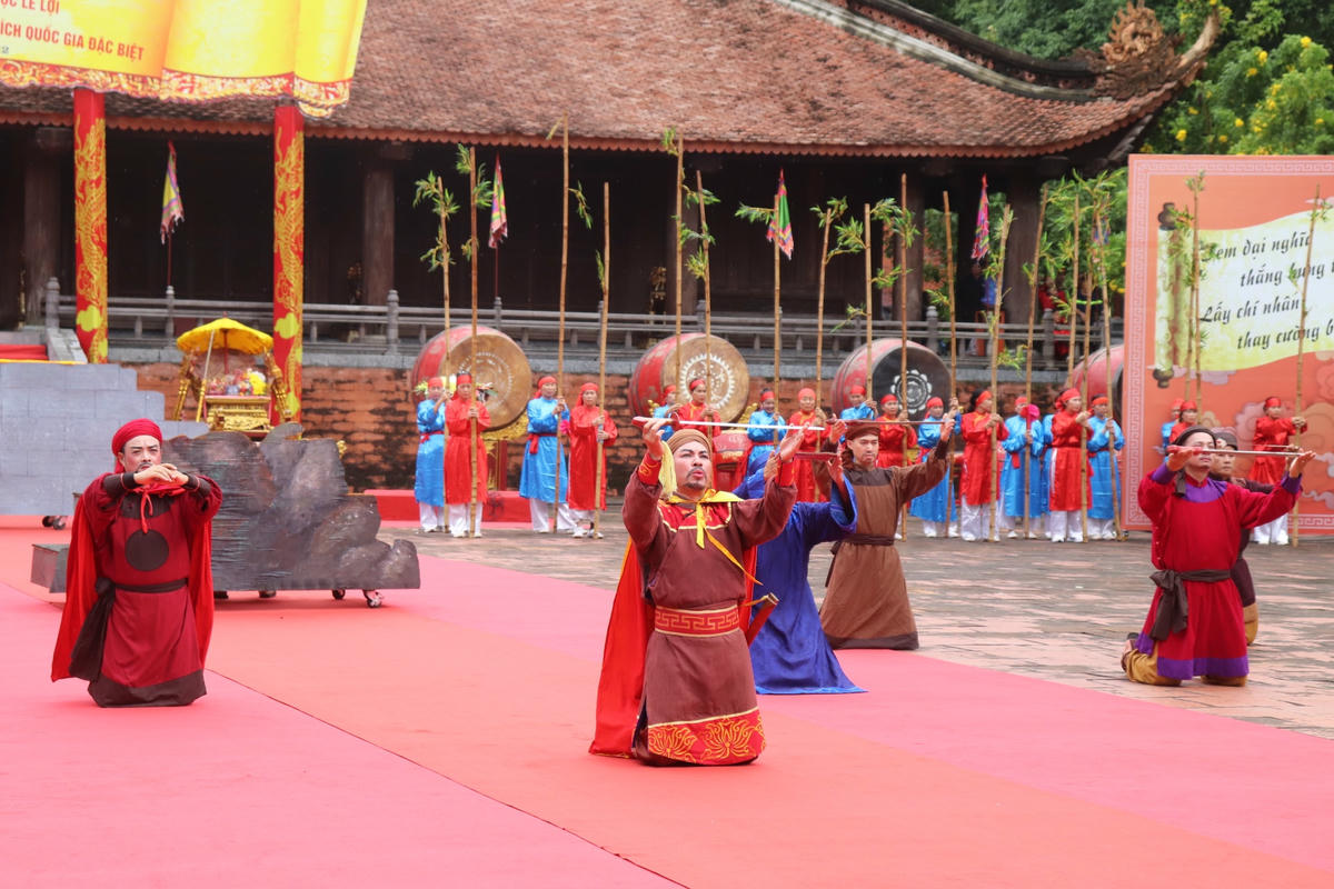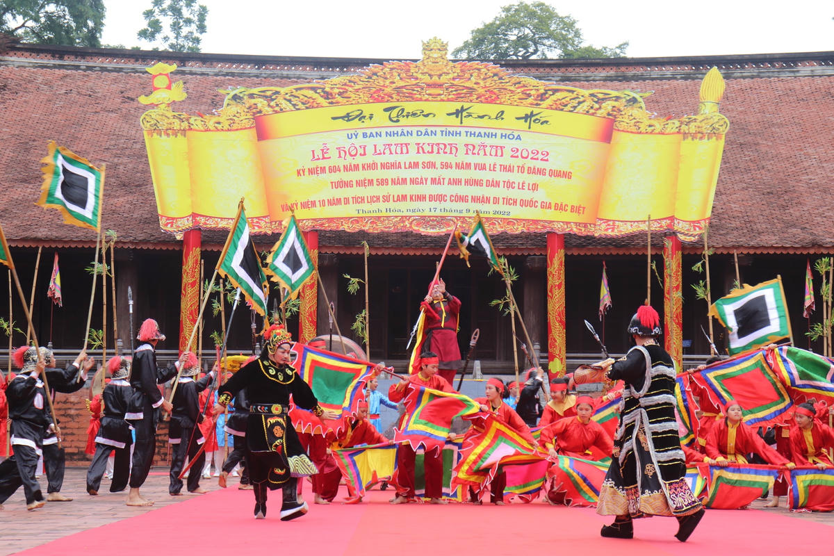 Đặc biệt, màn sân khấu hóa “Hào khí Lam Sơn – tỏa sáng trường tồn” đã tái hiện sinh động một giai đoạn lịch sử hào hùng và những công lao, sự nghiệp to lớn của người anh hùng cùng các tướng sĩ, nhân dân đã đánh đuổi giặc Minh xâm lược, giành độc lập tự chủ và xây dựng đất nước phát triển hưng thịnh