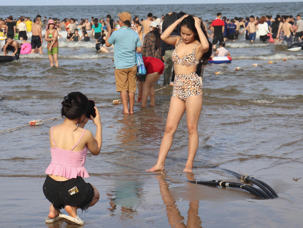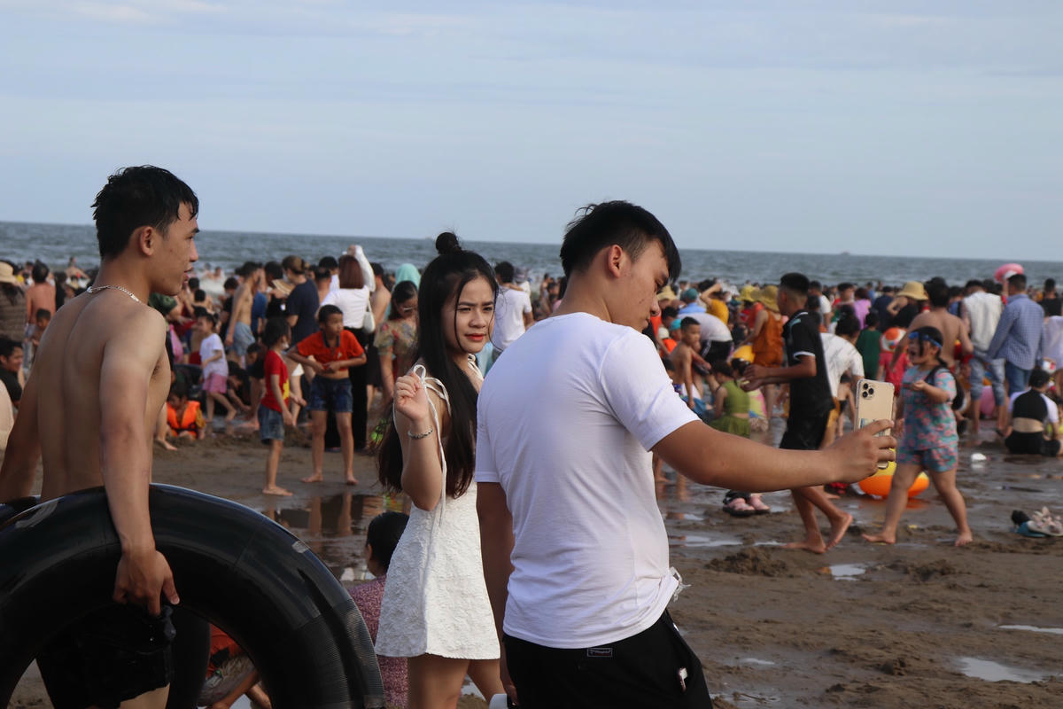 Chiều 30/4, trong tiết trời nắng nhẹ, hàng vạn du khách đổ xô ra biển Sầm Sơn (Thanh Hóa) để vui chơi. Dịp nghỉ lễ 30-4 - 1-5 kéo dài tới 4 ngày, vì vậy, đã có nhiều gia đình, cơ quan đặt lịch trước cả tháng để có thể tận hưởng kỳ nghỉ dưỡng ở bãi biển đẹp nhất xứ Thanh.Các bãi tắm A,B,C càng về cuối giờ chiều càng kín người. Trên các tuyến đường chính như Hồ Xuân Hương, Lê Lợi, Trần Phú, Trần Hưng Đạo... đông kịt ô tô, xe máy dẫn đến tình trạng tắc đường.Khoảng 10 năm vừa qua, Sầm Sơn đã liên tục thu hút được nhiều tập đoàn có chuyên môn, kinh nghiệm về lĩnh vực du lịch như FLC, Sun Group, Flamingo... về đầu tư các dự án tại địa phương. Nhờ đó mà từ một làng chài hoang sơ, Sầm Sơn đã chuyển mình thành một trong những bãi biển đẹp và có đông khách đến du lịch nhất cả nước.Bãi cát trắng, bờ biển dài, sóng vỗ liên tục... là những món quà mà ông trời ban tặng cho Sầm Sơn.Những năm gần đây, lượng du khách chính đến Sầm Sơn thường là các nhóm bạn trẻ.Ngoài đi tắm biển, một lý do khác khiến du khách đổ về Sầm Sơn nườm nợp là nơi đây có view đẹp nhìn ra biển. Chỉ cần có trong tay chiếc smart phone, các bạn trẻ thoả sức sống ảo, có những bức hình đẹp để đời.Các bạn nữ thường đi cụm đôi với nhau để thay nhau chụp ảnh cho đối phương.Các bạn nam thường phải đóng vai là những nhiếp ảnh gia bất đắc dĩ khi đi du lịch cùng người yêu.Một bạn nữ đang tập trung biểu diễn điệu nhảy của mình khi quay TikTok. Còn về phía bạn nam, anh chàng phải mang vác lỉnh kỉnh cả túi, dép và một bao quần áo.Các gia đình trẻ cảm thấy sự gắn kết sau mỗi bức hình và sau mỗi chuyến du lịch tại Sầm Sơn.Trước khung cảnh đông nghịt người tắm biển, một số bạn trẻ đã lựa chọn ở trên bờ để check-in.Những cánh diều nhiều màu sắc bay phấp phới trong gió.Trên các mỏm núi giáp ranh bãi tắm, du khách cũng tranh thủ tiết trời đẹp để check-in.Rác thải được thu gom ngay lập tức khi nhân viên vệ sinh phát hiện có du khách xả rác ra bờ biển.Lực lượng cứu hộ, cứu nạn luôn thường trực tại những vị trí cao để theo dõi, bao quát tình hình khi du khách tắm biển.Một số du khách mặc dù không trang bị áo phao nhưng vẫn cố bơi ra xa bờ.Một phụ nữ được phát hiện bị ngạt nước khi tắm biển. Sau đó, người này đã được đưa ngay lên bờ và mang lên xe cấp cứu đang trực sẵn 24/24 gần đó.