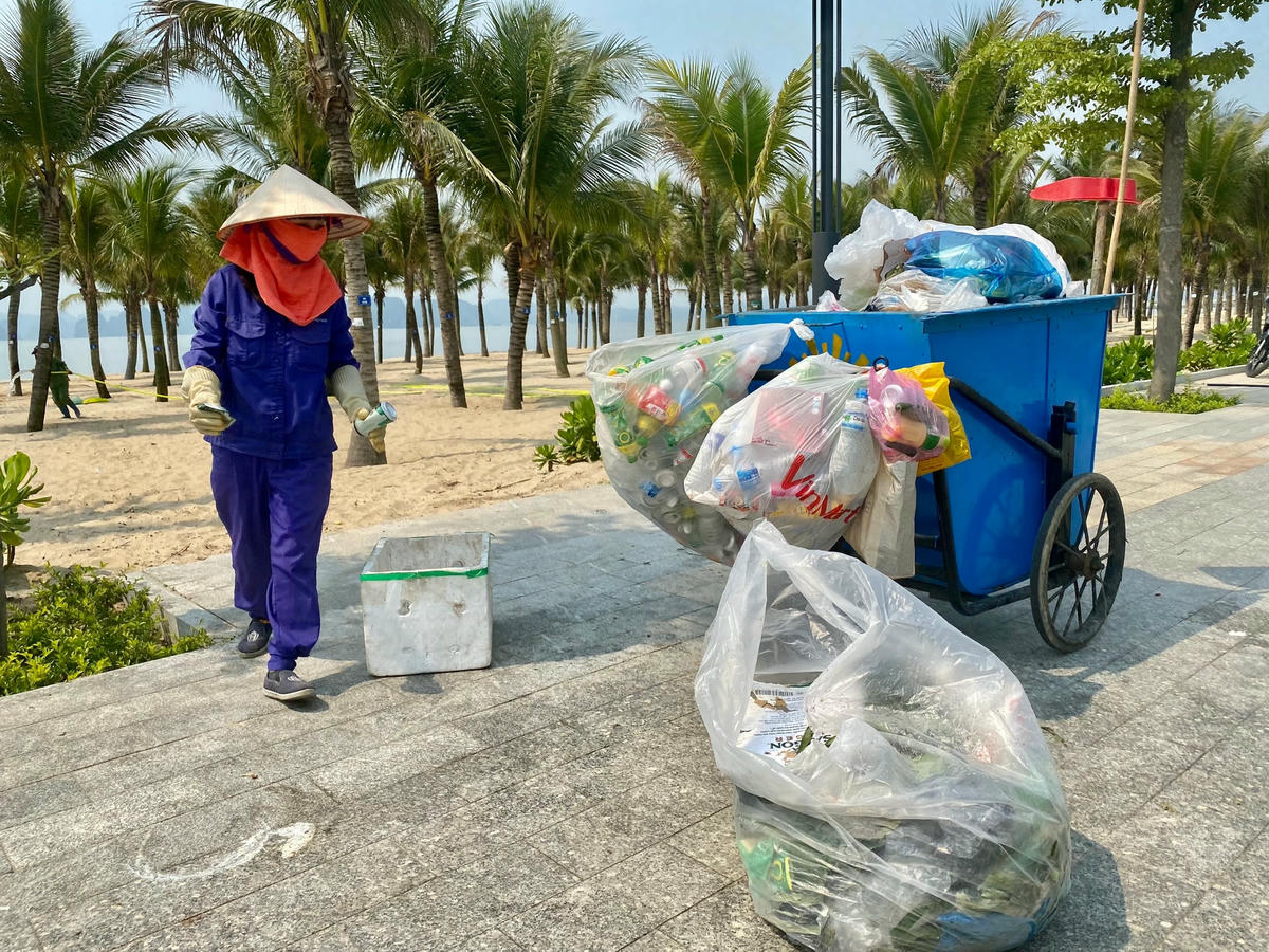 Cô Hà Thị Hạ, nhân viên dọn vệ sinh môi trường chia sẻ: Công ty đã trang bị rất nhiều thùng rác đặt dọc tuyến đường để phục vụ mọi người vứt rác đúng nơi quy định. Nhiệm vụ hàng ngày của chúng tôi là đi đổ rác trong thùng, vậy mà giờ chúng tôi phải đi nhặt nhạnh và thu gom rất nhiều rác bị xả bừa bãi rải rác trên vỉa hè và ở bãi cát… Có những chỗ chỉ cách thùng rác vài bước chân mà người ta không nỡ vứt rác vào thùng thì thật sự là ý thức kém.