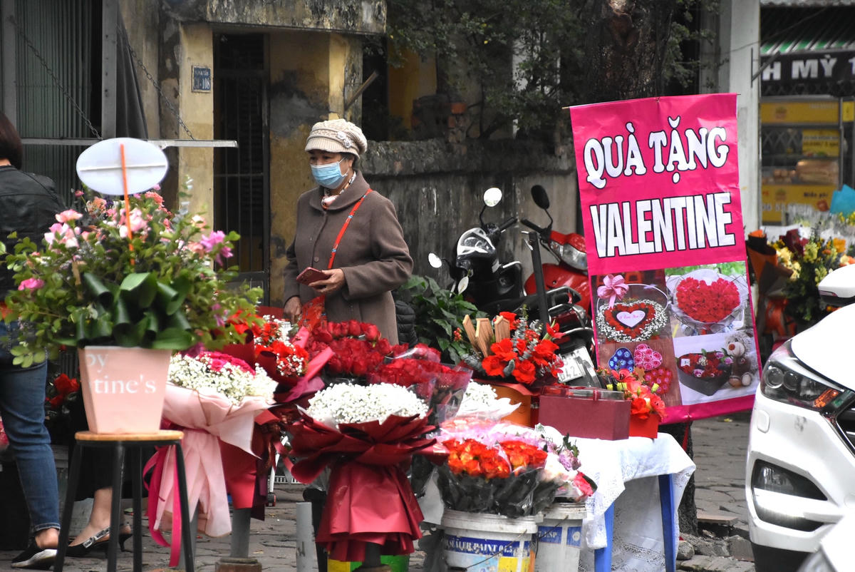 Theo ghi nhận của PV Báo Đại Đoàn Kết, nhiều cửa hàng hoa tươi tại Hà Nội "mạnh tay" nhập hàng với số lượng lớn để phục vụ nhu cầu của người dân.Trên đường Nguyễn Phong Sắc (Cầu Giấy), không khí mua sắm hoa, quà tặng Valentine có phần sôi động hơn hẳn ngày thường.Chị Thu Hà, chủ một tiệm hoa tại đây cho biết, để đáp ứng nhu cầu mua hoa tươi ngày lễ tình nhân, chị đã nhập hoa với số lượng lớn hơn 30% so với ngày thường. Tuy nhiên giá hoa nhập năm nay cao hơn hẳn so với mọi năm nên giá bán cũng có phần tăng mạnh. Các loại hoa bán chủ yếu trong ngày này là hoa hồng. Tuy nhiên theo chị Hà, nắm bắt được nhu cầu chi tiêu không được "mạnh tay" của khách hàng năm nay nên các loại hoa nhập chỉ ở mức trung bình, chị nhập rất ít hoa hồng cao cấp. Nguyễn Văn An (21 tuổi, Cầu Giấy) cho hay: "Ba năm nay, năm nào em cũng mua hoa để tặng người yêu nhưng năm nay thấy giá hoa cao hơn hẳn so với mọi năm. Vậy nên em chỉ dám chọn những bó nhỏ với mức giá dưới 500.000 đồng". Cũng theo đánh giá của nhiều chủ cửa hàng hoa tươi, năm nay sức mua của khách hàng có phần trầm lắng hơn so với mọi năm, đồng thời người dân cũng có xu hướng chọn hoa với mức giá dưới 1 triệu đồng/bó.Bên cạnh đó, các loại hoa hồng nhập bán chậm hơn so với mọi năm.Cùng với hoa tươi, các loại socola quà tặng cũng được bày bán rất nhiều trong ngày lễ tình nhân.Với đa dạng mẫu mã, mức giá,...Ngoài những bó hoa được bó thông thường, hoa hồng bó thành hình trái tim cũng được nhiều cửa hàng bày bán với mức giá từ 800.000 - 1.500.000 đồng/bó.Hoa tươi cũng được bày bán rất nhiều trên các tuyến phố.