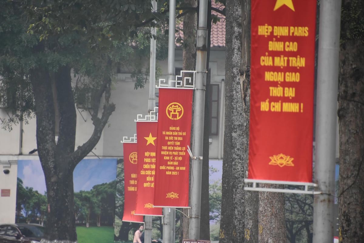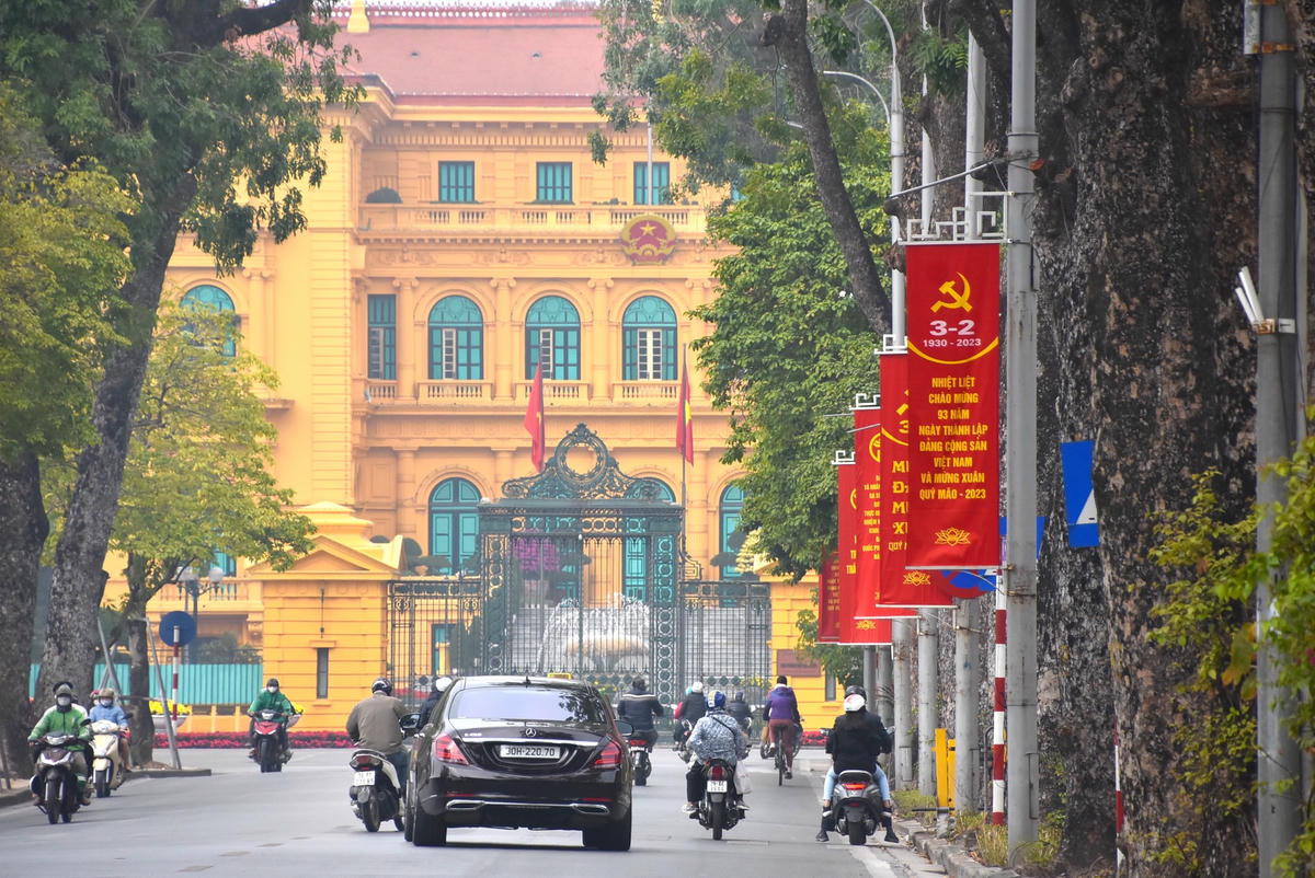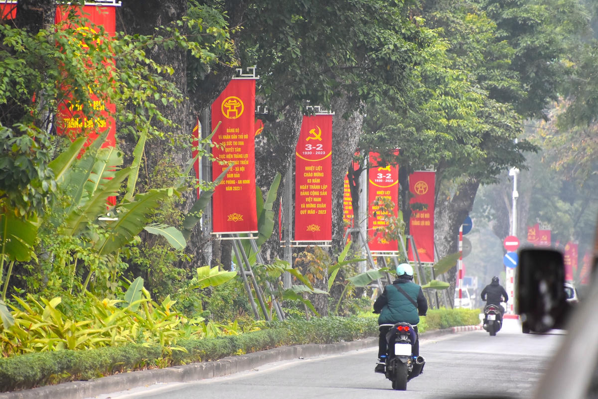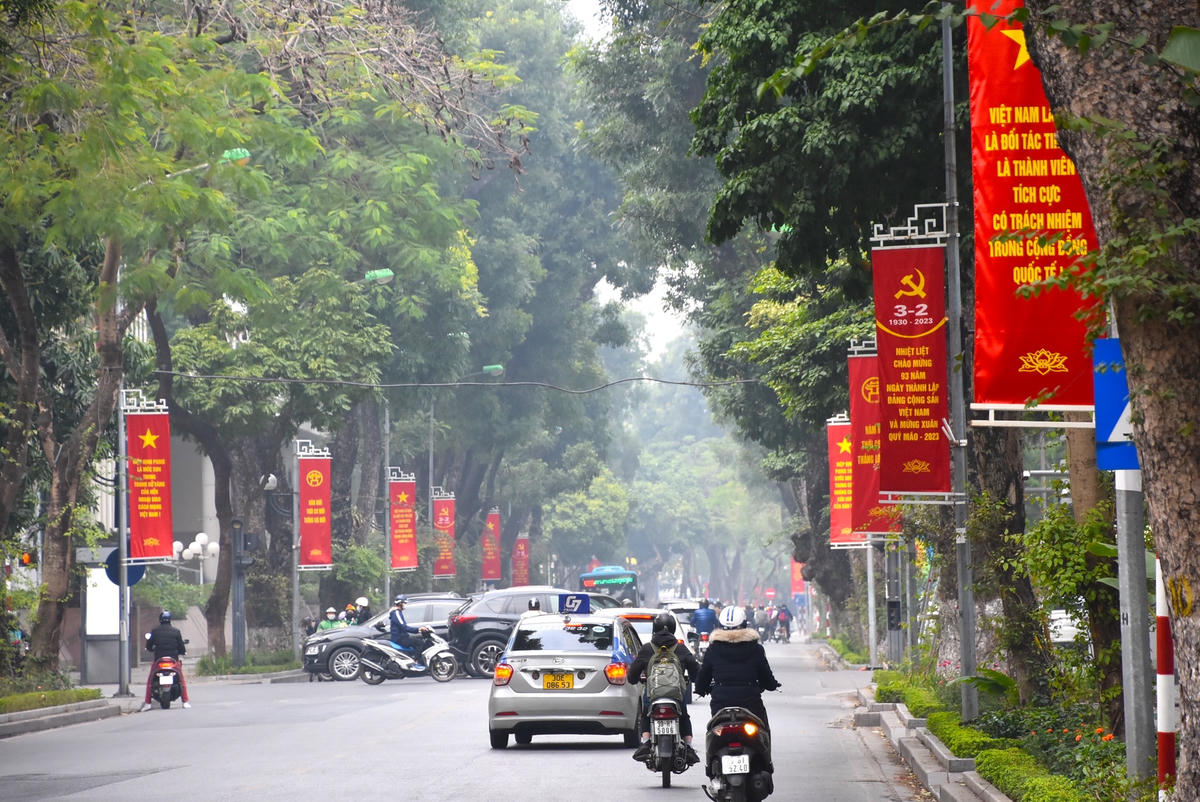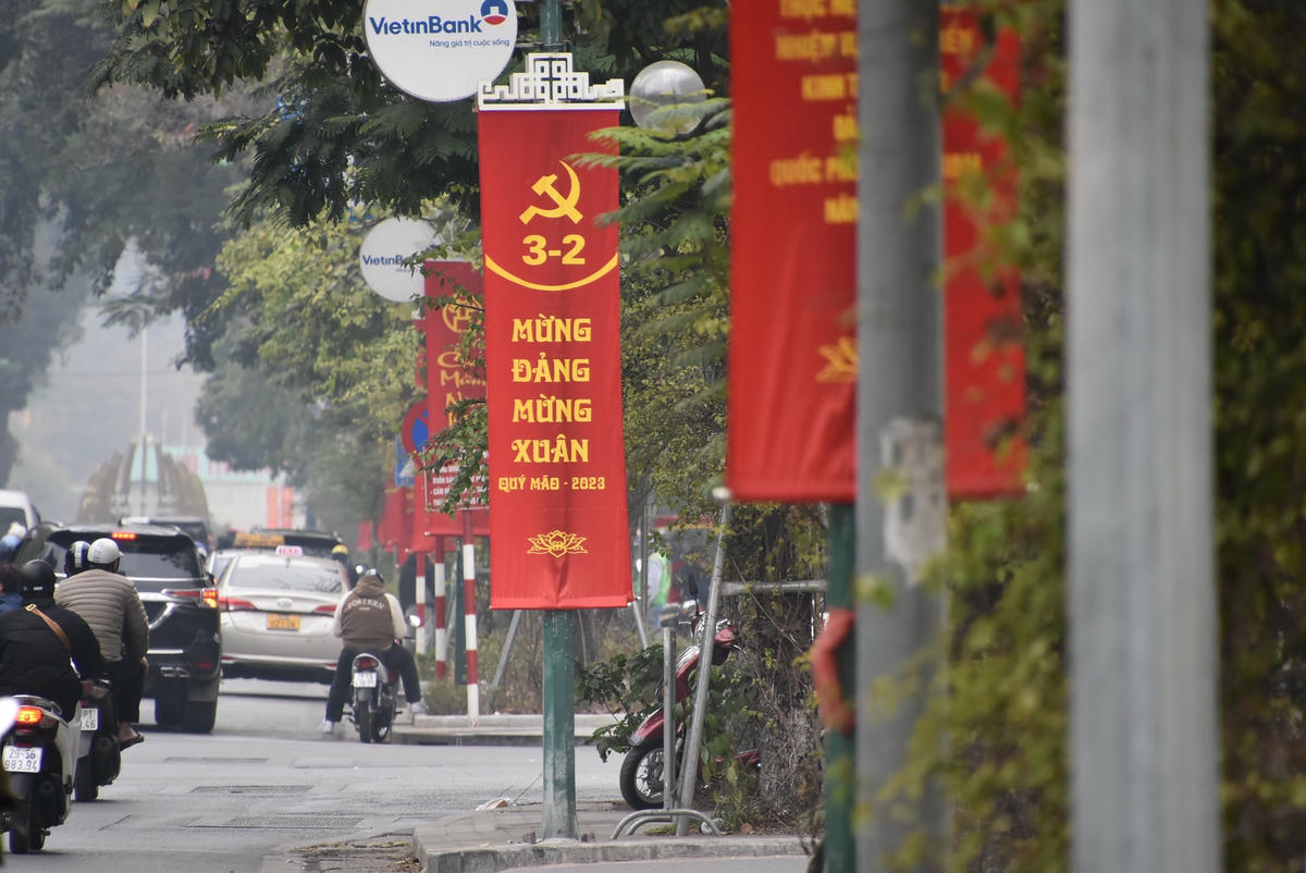 Nhiều tuyến đường Hà Nội tưng bừng với sắc màu rực rỡ của cờ hoa, băng rôn, khẩu hiệu,… nhằm kỷ niệm 93 năm Ngày thành lập Đảng Cộng sản Việt Nam (3/2/1930 - 3/2/2023).