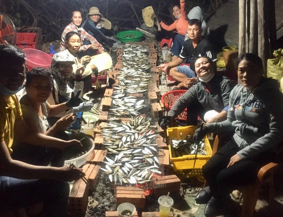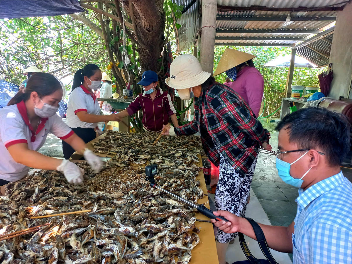 [Ảnh] Giữa trưa nắng, người dân vùng biển tất bật chế biến cá nục gửi tặng bà con TP HCM