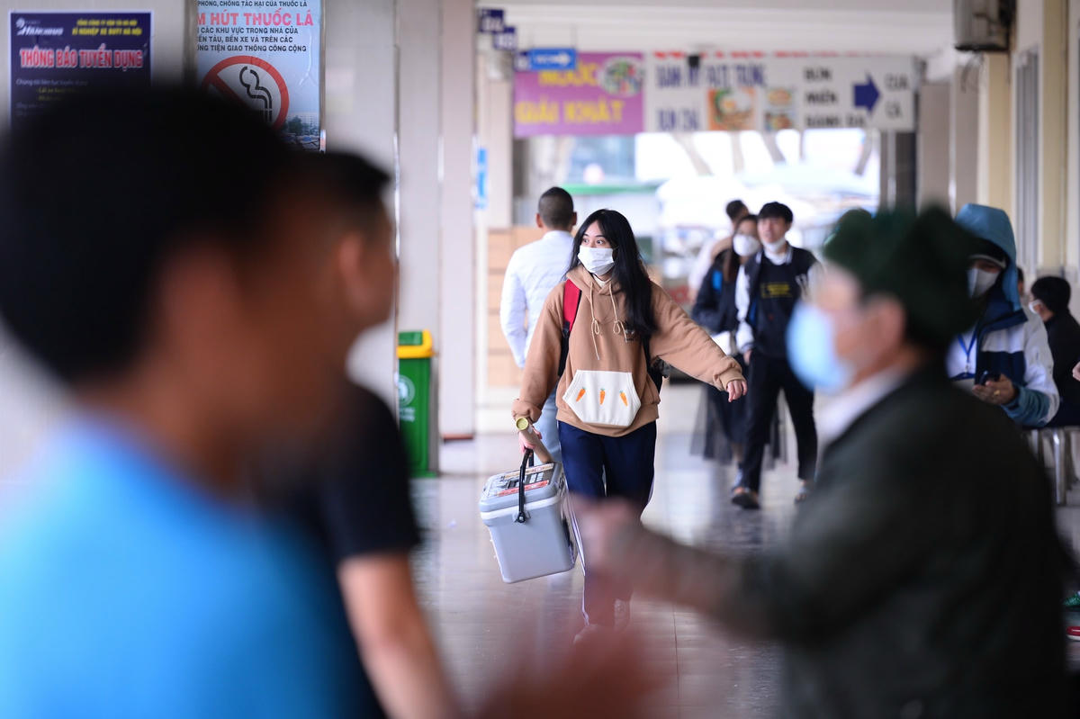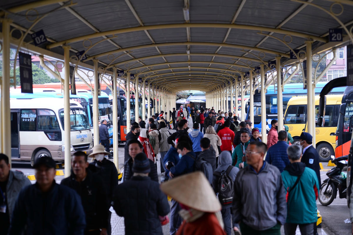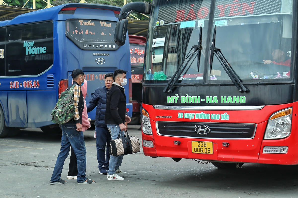 Theo ghi nhận của PV Báo Đại Đoàn Kết Online, chiều 30/12 nhiều người dân đang sinh sống, làm việc, học tập tại Hà Nội đã bắt đổ về các bến xe để về quê nghỉ Tết Dương lịch.Tại bến xe Mỹ Đình, hành khách ngồi khá đông đúc ở khu vực chờ mua vé về quê dịp nghỉ lễ.Chị Lò Thị Năm quê Lai Châu chia sẻ, lịch nghỉ Tết Dương lịch kéo dài 3 ngày nên đã tranh thủ về quê thăm gia đình sau gần một năm xa nhà.“Gần một năm nay tôi xa quê xuống Hà Nội để làm việc nên rất nhớ nhà. Ngay sau buổi làm việc cuối cùng tôi đã ngay lập tức đặt xe về quê thăm nhà sắm sửa thêm đồ đạc cho gia đình để chuẩn bị đón Tết Nguyên đán”, chị Năm cho hay.Anh Nguyễn Văn Sơn trú tại Thanh Hóa chia sẻ: “Vì sợ xe khách đông đúc nên tôi ra bến ngay từ đầu giờ chiều. Vì đến sớm nên lượng khách chưa đông đúc, tôi có thể bắt được xe ngay”.Ai nấy đều mang vác rất nhiều đồ đạc lỉnh kỉnh để về quê.Nhiều người có tâm lý sợ đông nên ra bến từ sớm, phải ngồi chờ xe chạy.Nhiều em nhỏ được mẹ đưa về quê thăm gia đình.Người dân chờ soát vé trước khi lên xe.Tại bến xe Giáp Bát dòng người bắt đầu đổ ra bến xe từ 16h.Giám đốc bến xe Giáp Bát Nguyễn Hoàng Tùng cho biết, kỳ nghỉ Tết Dương lịch năm nay, người lao động được nghỉ 3 ngày, tuy nhiên gần với Tết Nguyên đán, vì vậy lượng khách qua bến xe không đông hơn quá nhiều so với những ngày cuối tuần. Tuy nhiên, bến xe đã sớm xây dựng kế hoạch phục vụ nhu cầu đi lại của người dân.Càng về tối lượng hành khách đến bến càng đông hơn.“Tuy khách qua bến xe không đông như mọi năm nhưng để phục vụ tốt nhất nhu cầu đi lại của nhân dân, bến xe đã tăng cường công tác kiểm tra phòng, chống cháy nổ, bố trí nhân lực điều tiết, giải quyết dứt điểm tình trạng phương tiện dừng đỗ trên đường xe xuất bến và cổng bến. Chúng tôi kiên quyết không để phương tiện chạy lòng vòng trong sân để đón khách, không để tình trạng phương tiện không có hợp đồng, bị đình chỉ, không đủ điều kiện vào bến đón, trả khách”, ông Nguyễn Hoàng Tùng thông tin.