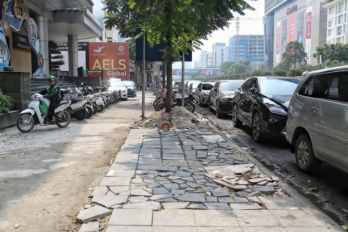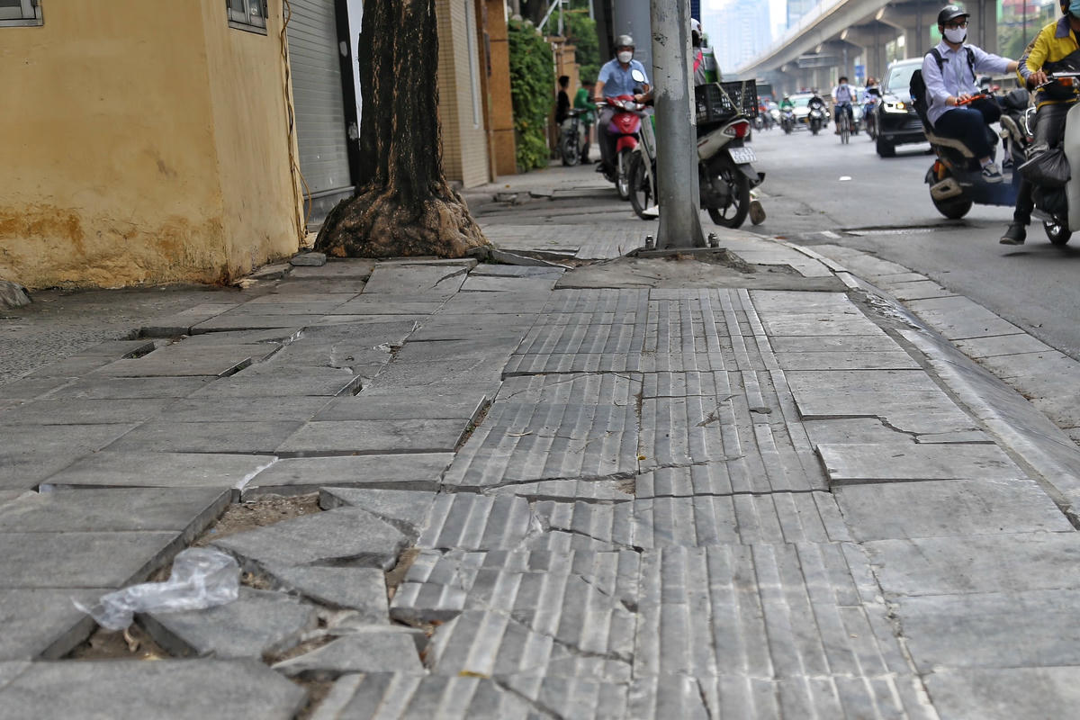 Từ cuối năm 2016, TP Hà Nội ban hành quy định mới về cải tạo hè phố. Mục tiêu đến năm 2020, vỉa hè của hơn 900 tuyến đường tại 12 quận nội thành được thay thế từ gạch truyền thống sang đá tự nhiên có kết cấu bền vững với tuổi thọ lên đến 70 năm. Song, chỉ sau vài năm đi vào sử dụng vỉa hè của nhiều tuyến phố đã nhanh chóng xuống cấp.Theo ghi nhận của PV Báo Đại Đoàn Kết Online, tại nhiều tuyến phố trên địa bàn Hà Nội như: Nguyễn Trãi, Láng Hạ, Nguyễn Chí Thanh,… vỉa hè được lát bằng đá tự nhiên đang nứt, vỡ, bề mặt vỉa hè lồi lõm.Đơn cử tuyến phố Trần Phú, Nguyễn Trãi, dù vỉa hè mới được lát đá tự nhiên tuổi thọ 70 năm từ khoảng quý III/2017, đến nay nhiều đoạn vỉa hè đã xuống cấp, các vết nứt, vỡ, lồi lõm không khó bắt gặp.Đá tự nhiên có tuổi thọ 70 năm bị sụt lún nhanh chóng sau thời gian ngắn đưa vào sử dụng.Thậm chí, một số đơn vị thi công lát đá trên truyến đường từ Nguyễn Trãi hướng đi Nguyễn Xiển đang được các đơn vị thi công thay thế, lát mới. Vật liệu xây dựng nằm chềnh ềnh, không có biển cảnh báo dù lưu lượng phương tiện trên tuyến luôn trong tình trạng đông đúc gây mất ATGT.Tương tự, tại tuyến phố Láng Hạ (Ba Đình), vỉa hè đang được đào lên và lát lại. Vật liệu xây dựng chất đống trên vỉa hè. Hàng dài xe ngang nhiên lấn chiếm lòng đường khiến tuyến phố Láng Hạ trở lên nhếch nhác, mất mỹ quan.Người đi bộ bị "đẩy" xuống lòng đường gây mất ATGT.Tại tuyến đường Nguyễn Chí Thanh, hai bên vỉa hè cũng đang được thay thế.Nhiều viên đá lát tự nhiên có tuổi thọ 50 - 70 năm vỡ vụn sau chỉ vài năm sử dụng.Gạch, đá bị bung tróc nằm chỏng chơ trên vỉa hè.Ô tô ngang nhiên dừng đỗ lấn chiếm vỉa hè.