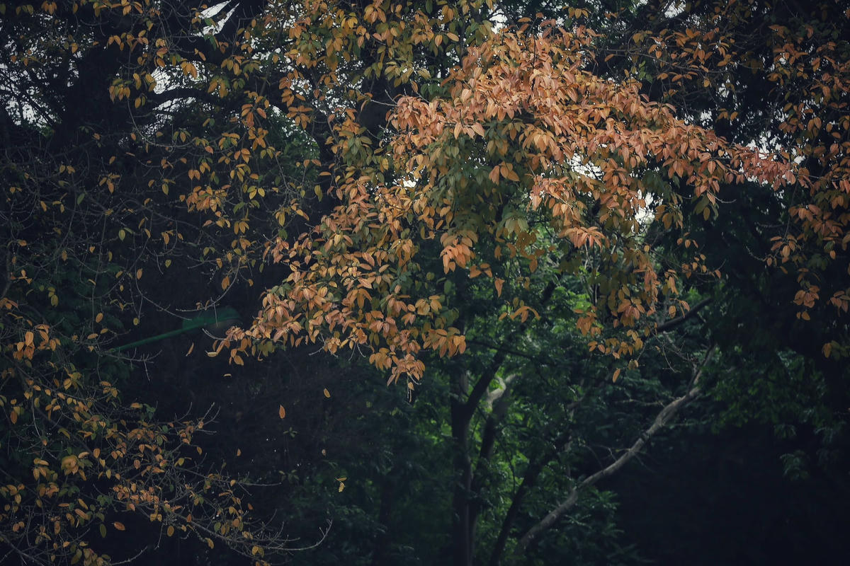 Sau chuỗi ngày mưa, nồm ẩm, trời Hà Nội bắt đầu có nắng nhẹ, cũng là lúc góc phố cuối đường Hoàng Hoa Thám (Hà Nội) bắt đầu thay lá. Sắc vàng, đỏ, xanh đan xen vô cùng đẹp mắt.