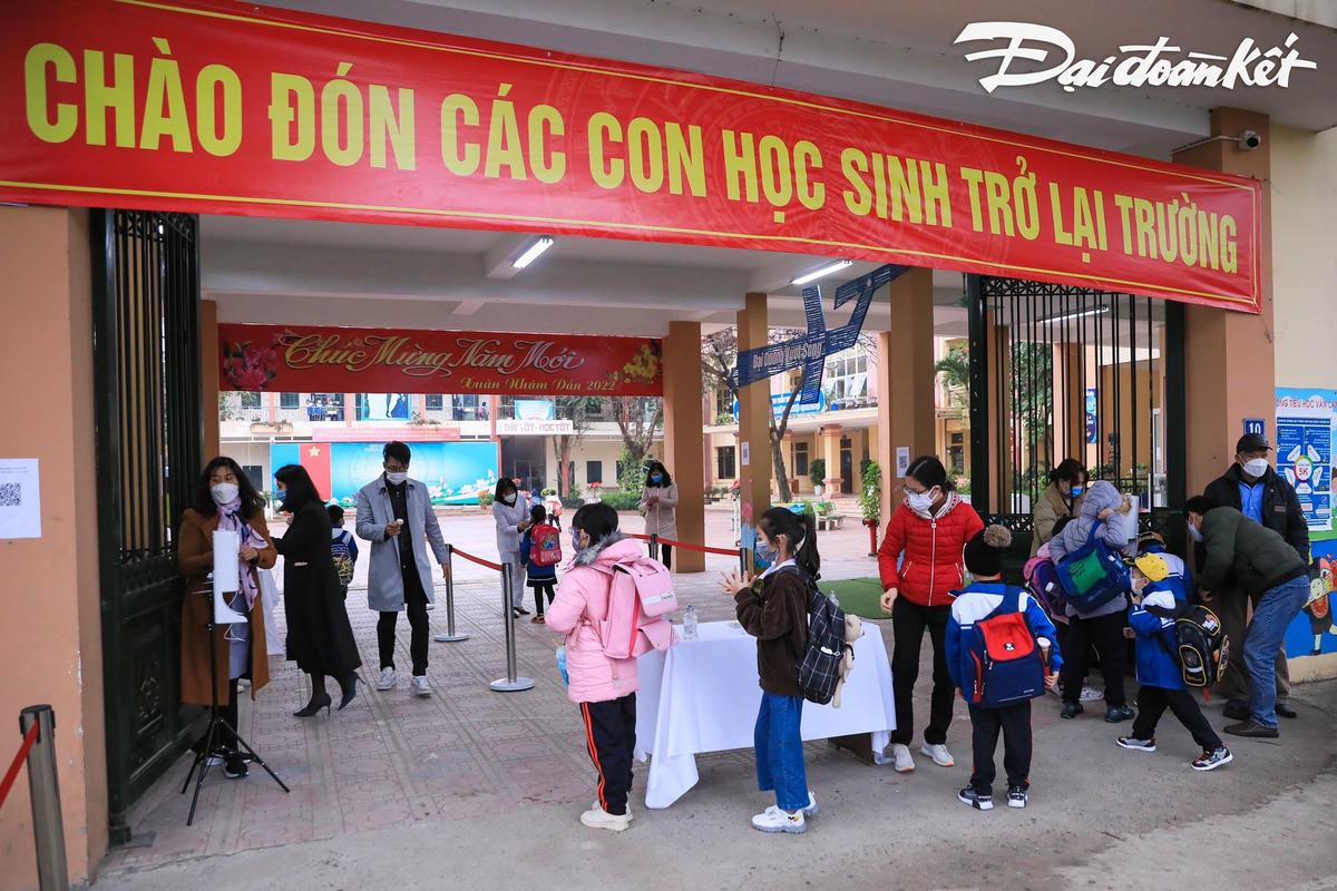 Sáng ngày 10/2, học sinh từ lớp 1 đến lớp 6 của 18 huyện, thị xã ở ngoại thành Hà Nội đã được trở lại trường học trực tiếp sau một thời gian dài nghỉ do dịch Covid-19.