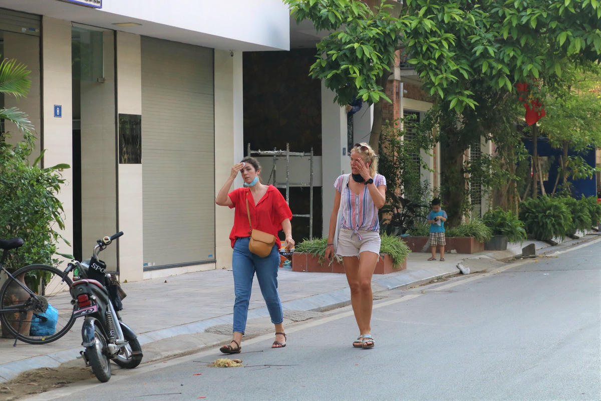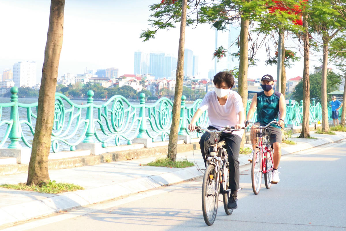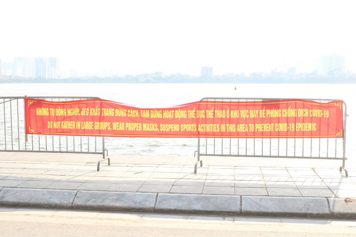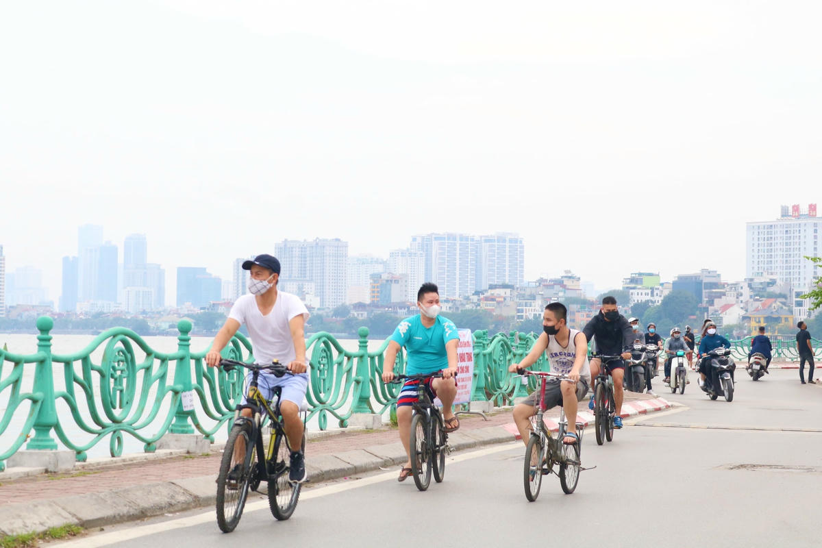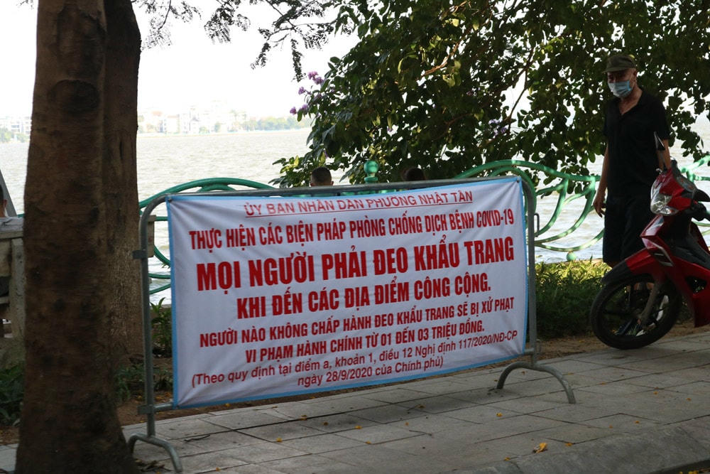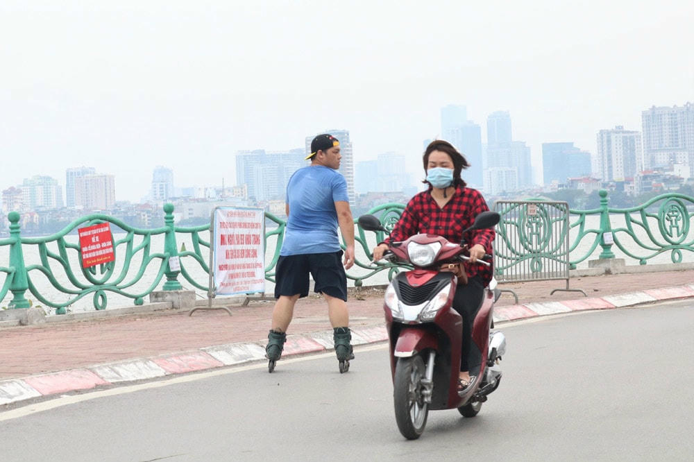 Từ 10/5, tại một số tuyến đường quanh khu vực hồ Tây, lực lượng chức năng đã lập rào chắn và treo biển báo nhắc nhở người dân hạn chế ra đường. Tuy nhiên, một số người vẫn phớt lờ nhắc nhở của Bộ Y tế, vô tư không đeo khẩu trang nơi công cộng, coi thường sức khỏe, tính mạng của chính mình và những người khác.