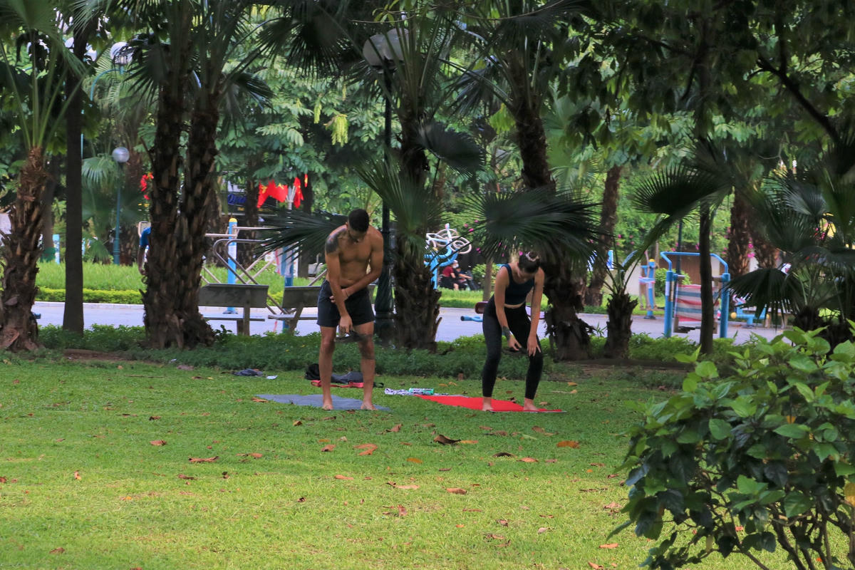 [ẢNH] Hà Nội: Người dân vẫn ‘vô tư’ tập thể dục, chụp ảnh không đeo khẩu trang ở Hồ Tây