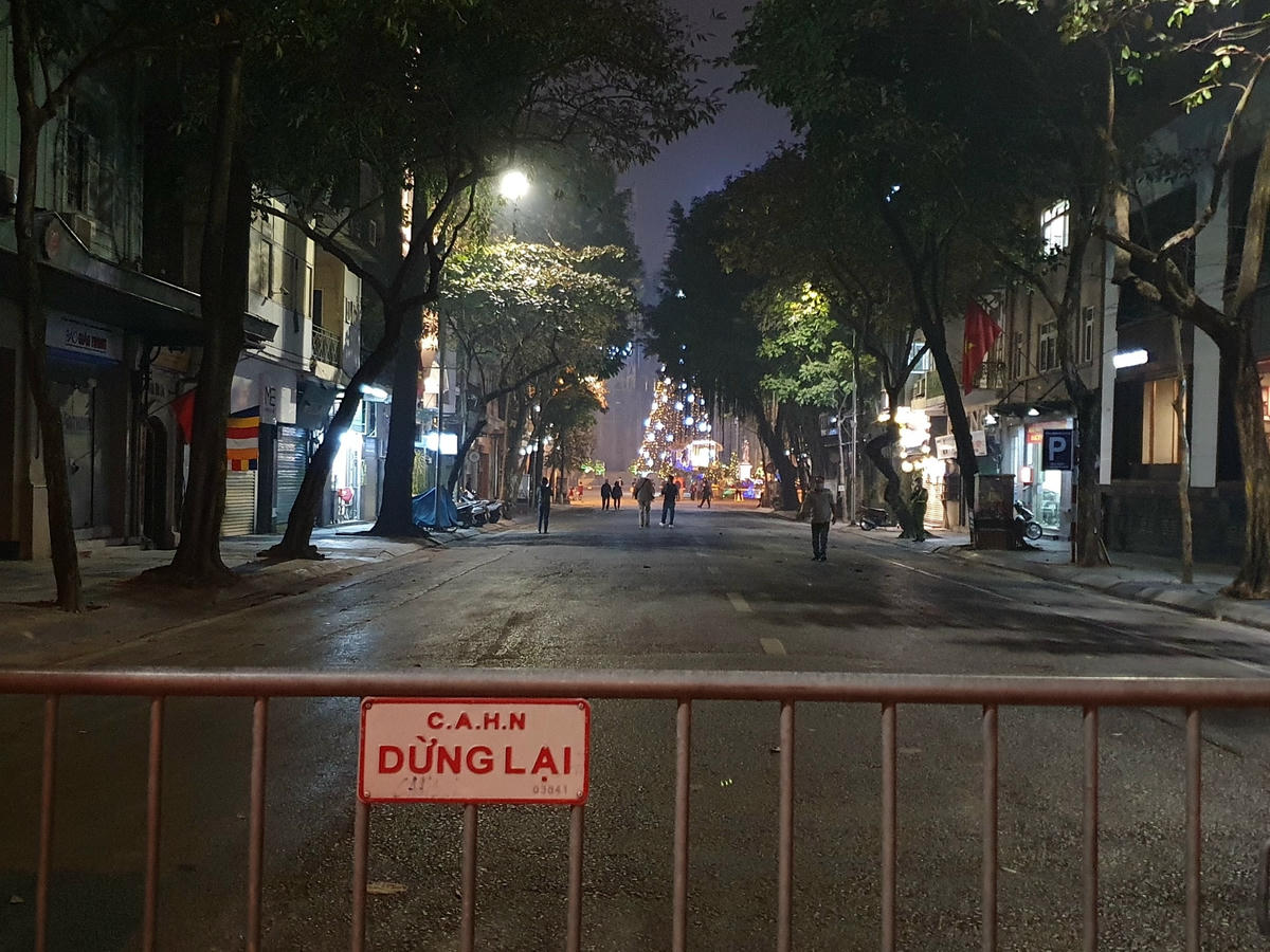 Theo ghi nhận của PV Đại Đoàn Kết Online, tối 24/12, nhiều tuyến phố của Hà Nội trở nên đông nghẹt.Các con đường đổ về Nhà thờ Lớn Hà Nội được bố trí chốt chặn, cấm xe di chuyển do ảnh hưởng của dịch Covid-19.Theo đó, các giáo dân đi dự thánh lễ Giáng sinh sẽ được các cơ sở tôn giáo gửi giấy mời để phối hợp cùng lực lượng chức năng kiểm soát lượng người nhằm phòng, chống dịch bệnh.Lực lượng chức năng được bố trí để phân luồng giao thông, nhắc nhở người dân...Do Nhà thờ Lớn hạn chế tập trung đông người, nhiều người dân đã đến các điểm vui chơi khác như Tràng Tiền Plaza, phố Hàng Mã...Đường vào phố Hàng Mã tập trung đông đúc người dân, chủ yếu là giới trẻ đến check-in, chụp hình.Giới trẻ hào hứng ghi lại những khoảnh khắc tại phố Hàng Mã đêm Giáng sinh.Nghiêm chỉnh chấp hành các quy định phòng chống dịch, đeo khẩu trang tại nơi công cộng.Một em bé được bố đưa đi chơi trên phố Hàng Mã.Một chốt chặn trên phố Hàng Mã. Gần đến 21h, lực lượng chức năng đã nhắc nhở các hộ kinh doanh đóng cửa hàng quán, thực hiện quy định phòng, chống dịch.Một triển lãm ảnh được trưng bày tại khu vực Hồ Gươm cũng thu hút sự quan tâm của người dân trong đêm Giáng sinh.