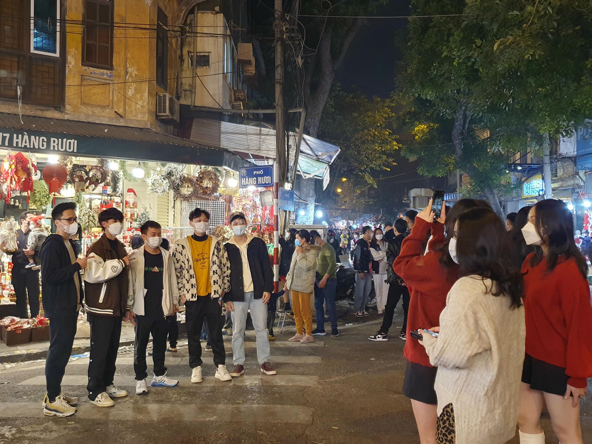 [ẢNH] Hà Nội: Nhà thờ Lớn vắng vẻ, phố Hàng Mã đông nghẹt đêm Noel