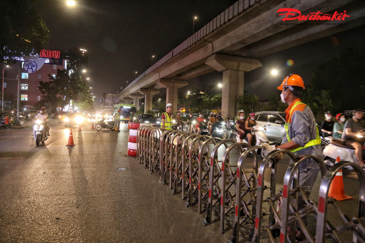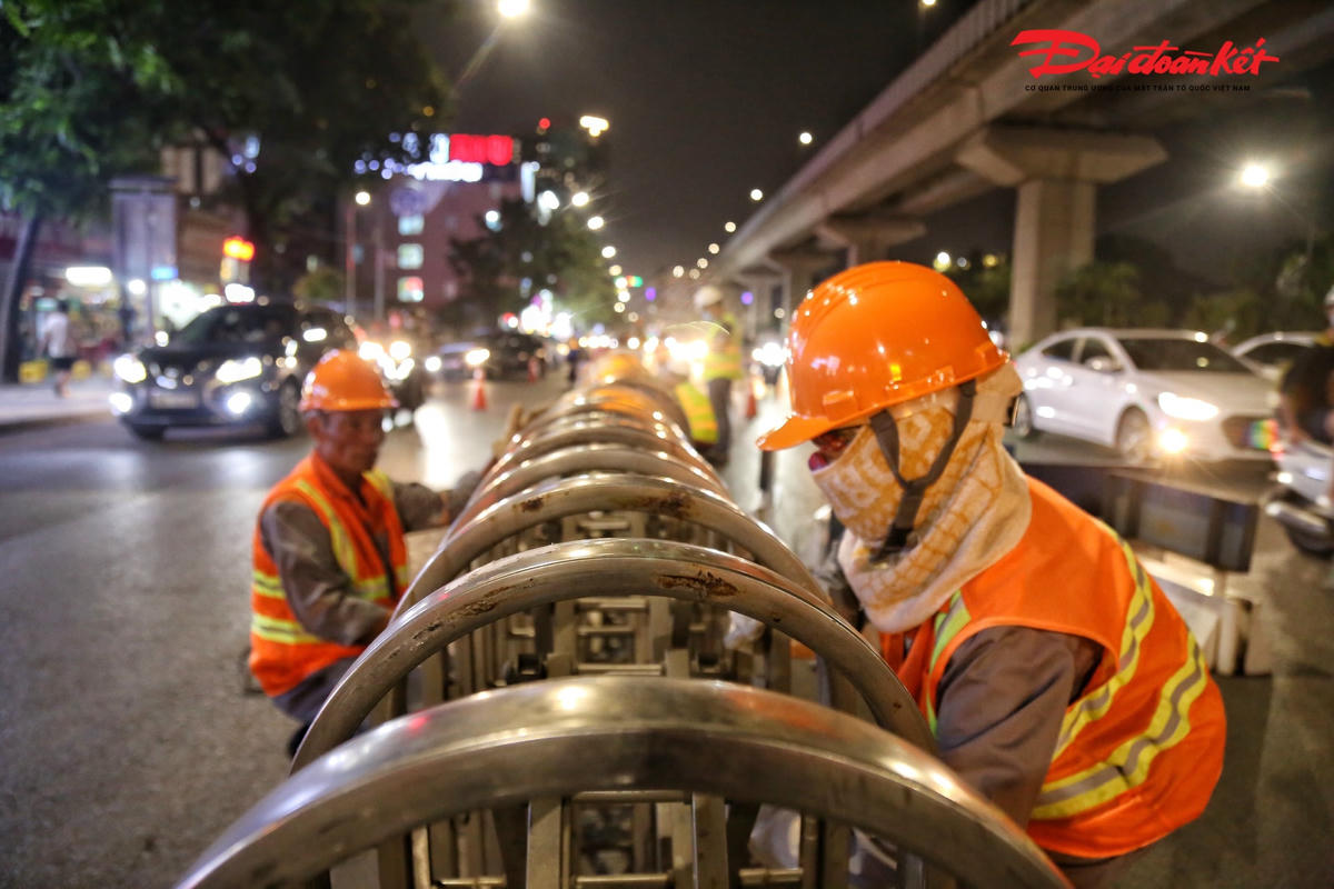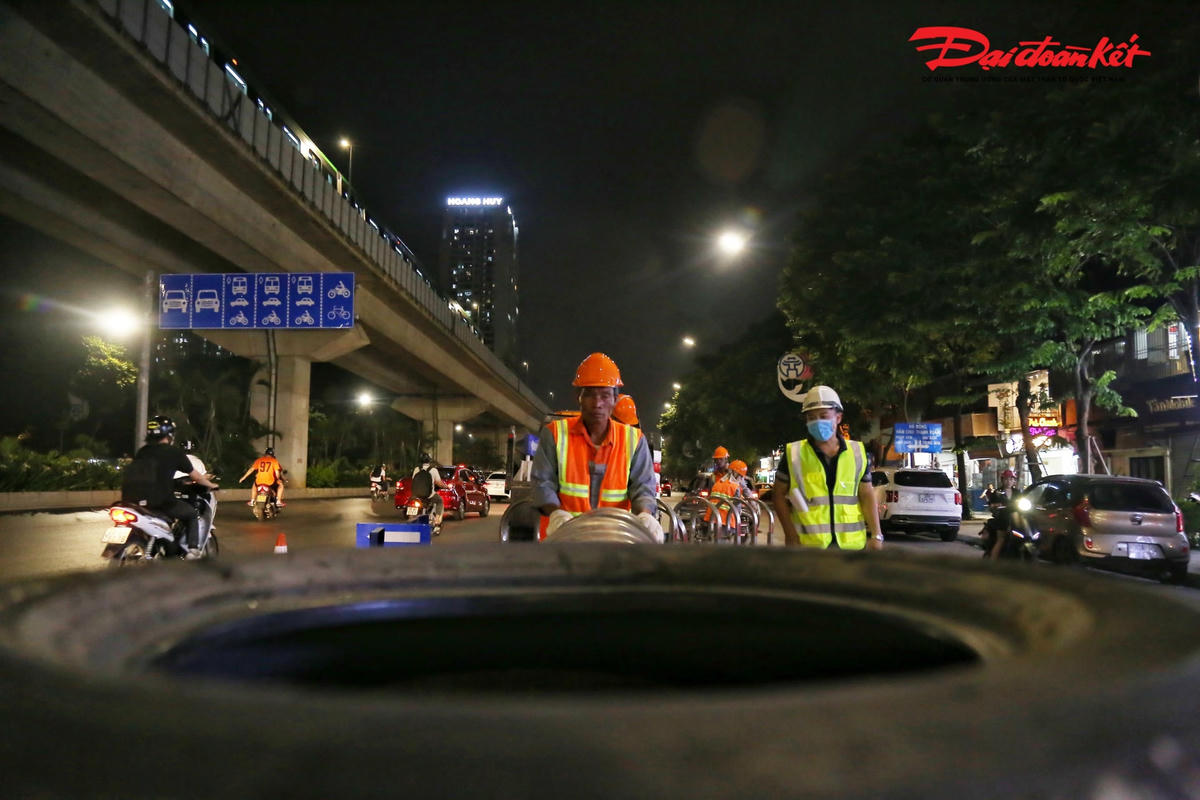 [ẢNH] Hà Nội: Thi công lắp rào cứng tách làn xe trên đường Nguyễn Trãi