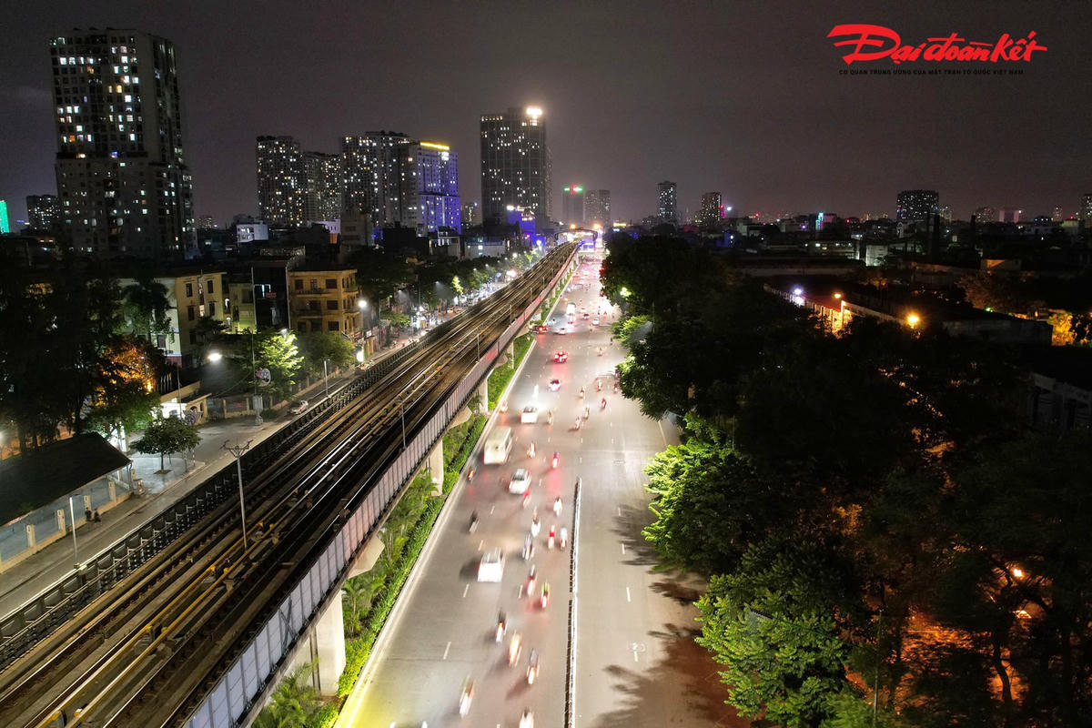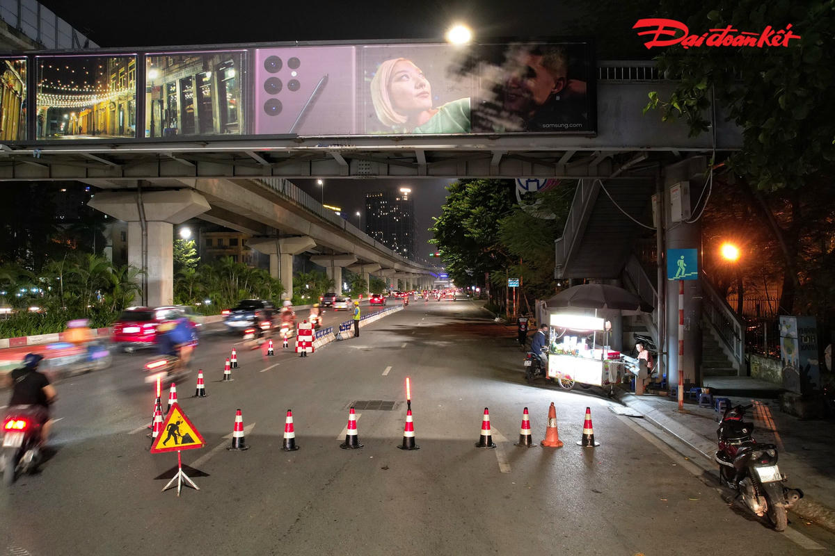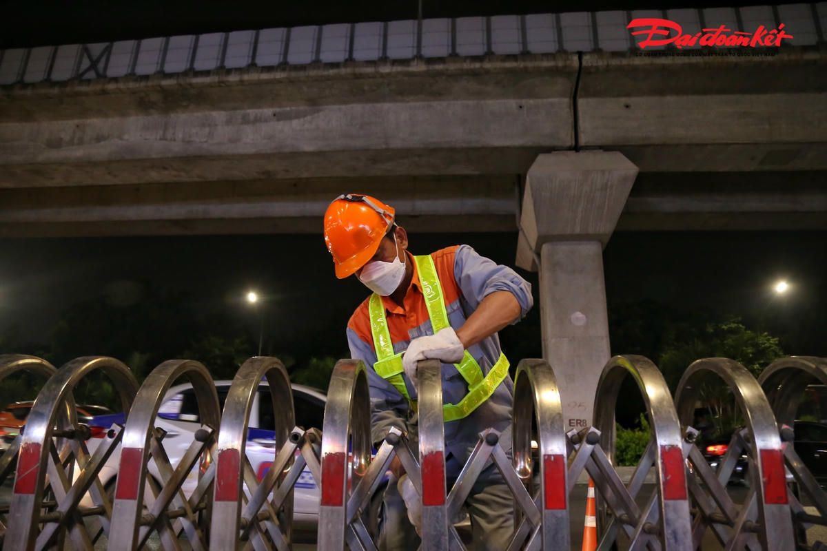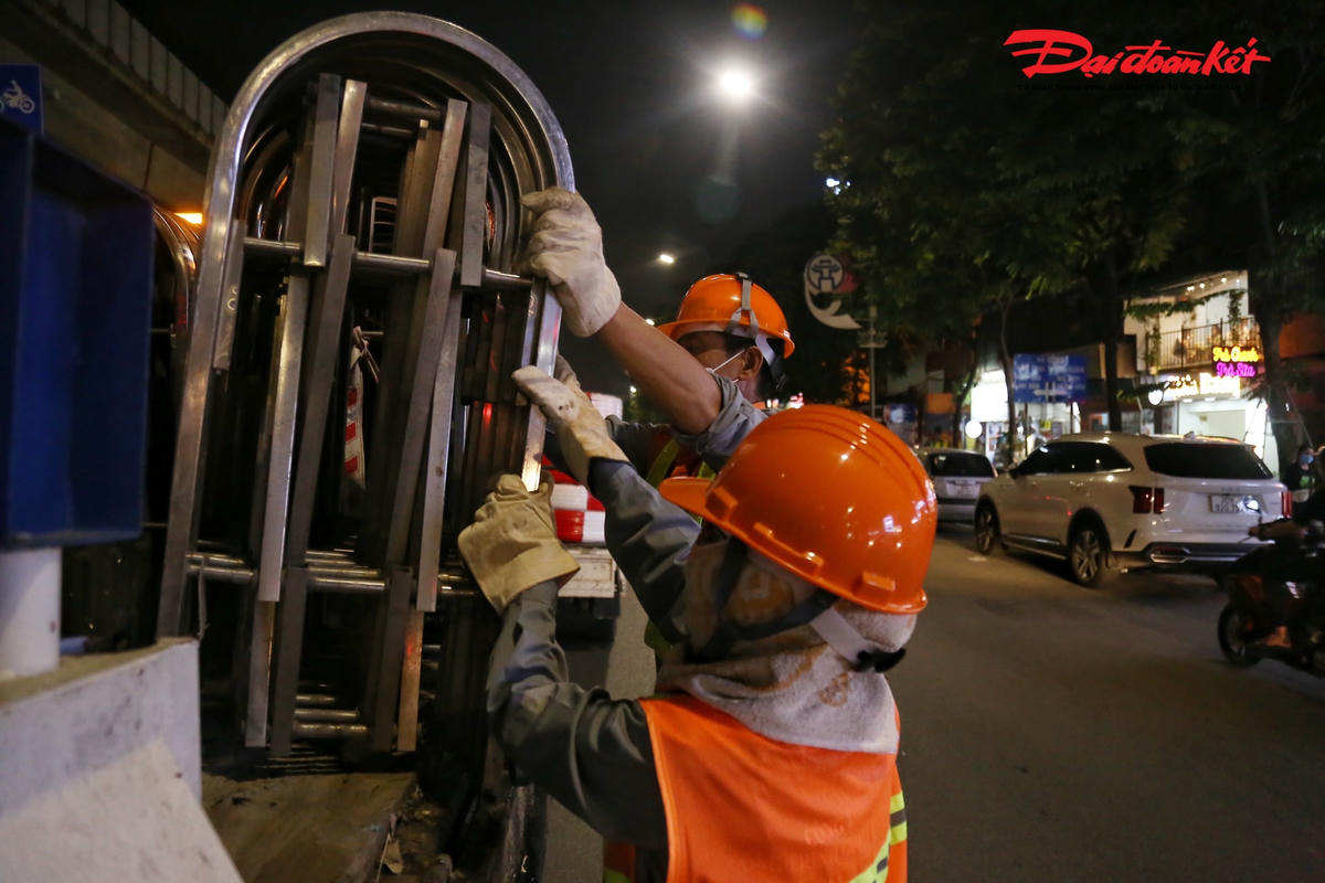 [ẢNH] Hà Nội: Thi công lắp rào cứng tách làn xe trên đường Nguyễn Trãi