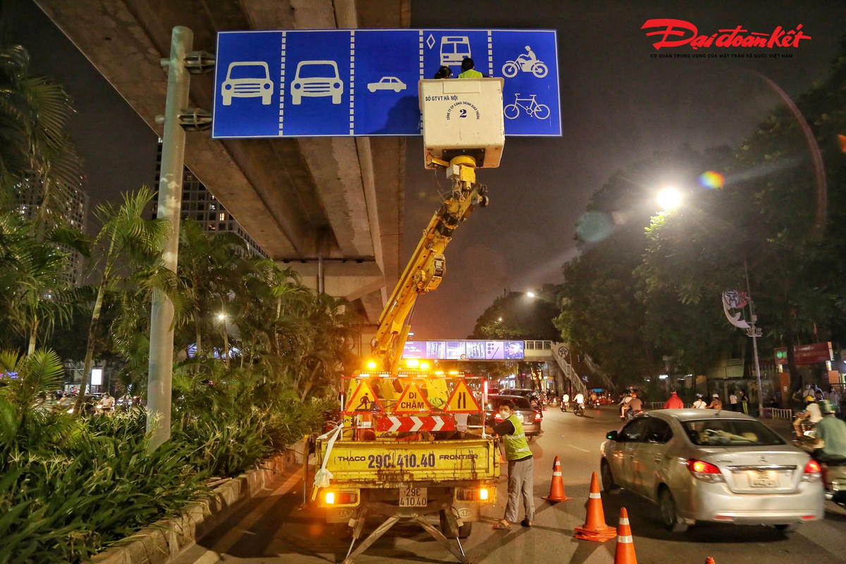 Hôm nay (6/8), Hà Nội thực hiện thí điểm phân làn cứng trên đường Nguyễn Trãi tách ô tô và xe máy kỳ vọng sẽ giảm tải ùn tắc giao thông. Từ đêm qua, hàng chục công nhân đã tiến hành lắp đặt biển báo, hàng rào cứng trên tuyến đường này.