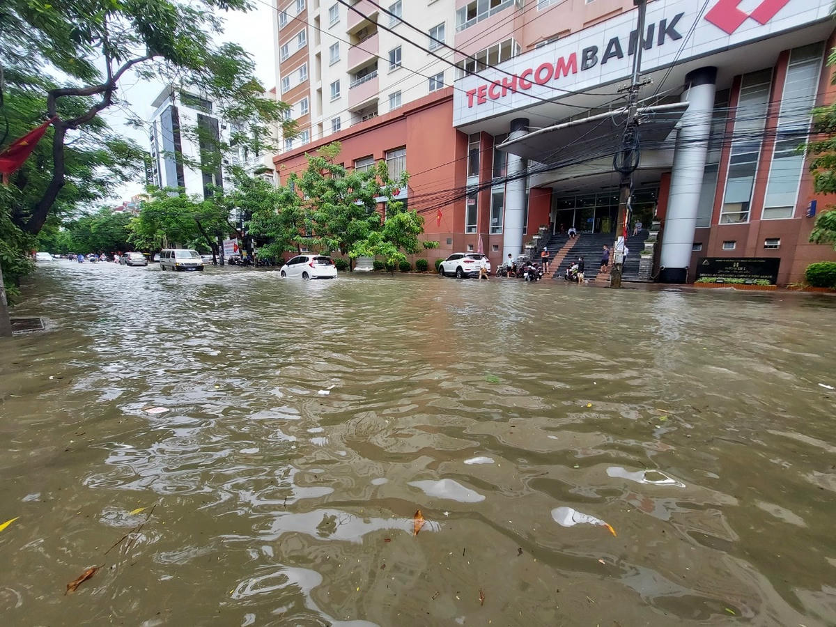 [Ảnh] Hải Phòng: Mưa lớn, nhiều tuyến phố thành sông
