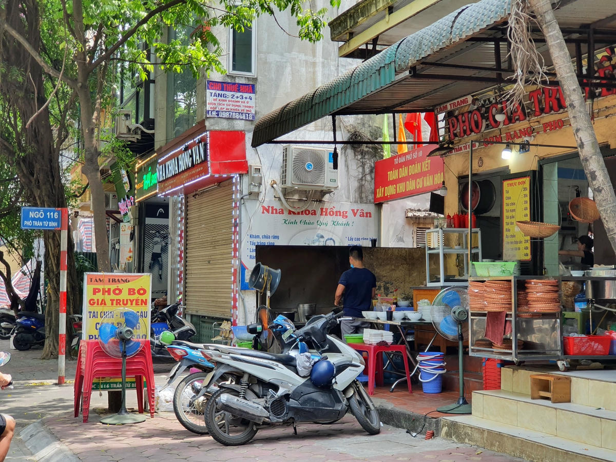 Một quán phở trên phố Trần Tử Bình đã chuẩn bị bán hàng từ sáng sớm. Chủ cửa hàng cho biết đã sắp xếp lại bàn ghế từ đêm hôm trước để chuẩn bị đón khách vào sáng nay. Ảnh: Hoàng Chiến.Đến khoảng 7h sáng, quán phở này đã nhộn nhịp khách vào ăn. Bàn ăn tại đây cũng được trang bị các vách ngăn, tấm chắn phòng chống dịch.Các quán ăn trên phố Tô Hiệu cũng đồng loạt mở cửa trở lại phục vụ nhu cầu của người dân.Cũng theo ghi nhận, lượng khách tại các địa điểm kinh doanh dịch vụ ăn uống như nhà hàng giảm đi đáng kể.Phần lớn người dân tập trung đông tại các quán bún, phở,...Hầu hết chủ các cơ sở dịch vụ ăn uống đều chia sẻ, dù lượng khách giảm đi nhiều nhưng họ vẫn cảm thấy vui mừng khi cửa hàng được hoạt động kinh doanh trở lại.Người dân thủ đô cũng cảm thấy phấn khởi khi nhiều dịch vụ đã được cho phép tiếp tục hoạt động.Nhiều người dân đến những quán cà phê để làm việc, gặp gỡ.Các tiệm cắt tóc, gội đầu "đắt khách" nhất trong các hoạt động kinh doanh được cho phép hoạt động trở lại.Theo đó, từ 0h ngày 22/6, UBND TP Hà Nội cho phép mở cửa trở lại như dịch vụ cắt tóc, gội đầu; dịch vụ ăn, uống trong nhà đảm bảo khoảng cách, có tấm chắn giữa người với người, ngồi không quá 50% công suất chỗ ngồi và không quá 20 nguời, đóng cửa trước 21h hàng ngày (nhà hàng rượu, quán rượu, bia, bia hơi chỉ được phép bán hàng mang về.Ngoài ra, ông Chử Xuân Dũng, Phó Chủ tịch UBND TP Hà Nội cũng yêu cầu chủ các cơ sở dịch vụ phải đảm bảo thực hiện nghiêm các biện pháp phòng chống dịch theo quy định, yêu cầu khách hàng khai báo y tế, lập danh sách, kiểm soát, đối chiếu thông tin khách hàng hàng ngày.
