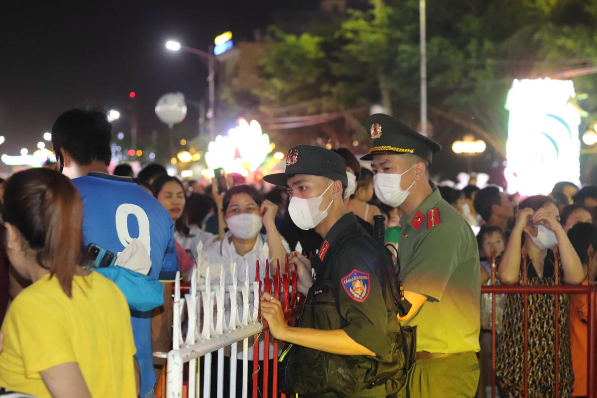 Tối 28/4, tại Quảng trường trung tâm Khu du lịch (KDL) sinh thái biển Hải Tiến, UBND huyện Hoằng Hóa đã khai mạc Lễ hội du lịch biển Hải Tiến năm 2023 với chủ đề “Hải Tiến - Khát vọng và phát triển". Chương trình sự tham gia của lãnh đạo tỉnh và đông đảo người dân địa phương.20h, dòng người đổ về Quảng trường khu dịch Hải Tiến ngày một đông.Để đảm bảo an ninh trật tự, lực lượng Công an phải lập rào chắn.Bên trong sân khấu chính, có hàng nghìn du khách và người dân địa phương chăm chú theo dõi các tiết mục âm nhạc, nghệ thuật. Phía bên ngoài, người dân theo dõi chương trình qua màn hình LED được thiết kế sẵn.Trong niềm vui sướng khi du lịch quay trở lại, nhiều gia đình đã tranh thủ đến nơi tổ chức lễ hội để cảm nhận bầu không khí sôi động.Do đứng quá xa sân khấu nên một số người dân phải bắc ghế lên đứng để theo dõi chương trình. Tại khu vực quảng trường, mọi người tranh thủ sử dụng smartphone để quay lại những khoảnh khắc tại lễ mạc du lịch biển Hải Tiến.Chương trình khai mạc du lịch biển Hải Tiến năm nay được người dân dân đánh giá có đầu tư và chất lượng mang đến khác biệt so với những lần trướcSau màn nghệ thuật mở đầu là đến phần lãnh đạo phát biểu, sau đó là màn bắn pháo hoa đặc sắc.Các cháu nhỏ háo hức theo dõi các tiết mục tại lễ hội du lịch.Lực lượng Công an căng mình đảm bảo an ninh trật tự, an toàn giao thông tại lễ hội.Những tiết mục biểu diễn dù lượn lần đầu tiên được triển khai tại lễ hội du lịch biển Hải Tiến.Bàn tay với chức năng làm chòi canh tại bờ biển Hải Tiến từng làm dậy sóng cộng đồng mạng, nay đã hoàn thiện cơ bản.