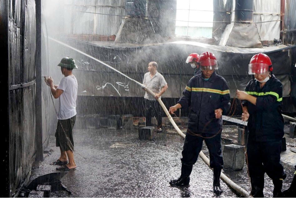 “Do thông tin muộn nên khi đến nơi, thấy cơ sở triển khai 5 lăng, 4 bình MSZ4 và 1 bình MT3 khống chế cơ bản được đám cháy, đơn vị đã kiểm tra xem nơi nào còn hiện tượng cháy để dập tắt triệt để, đồng thời tiến hành làm sạch cơ sở phun sơn và hướng dẫn khắc phục các tàn dư của đám cháy'', Đại úy Hùng thông tin.