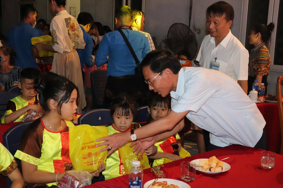 Ông Đầu Thanh Tùng, Phó Chủ tịch UBND tỉnh cùng bà Vũ Thị Hương, Giám đốc Sở LĐTBXH đã tặng quà tập thể cho trẻ em Trung tâm và người cao tuổi.