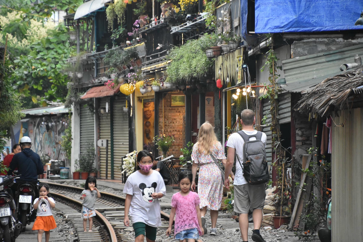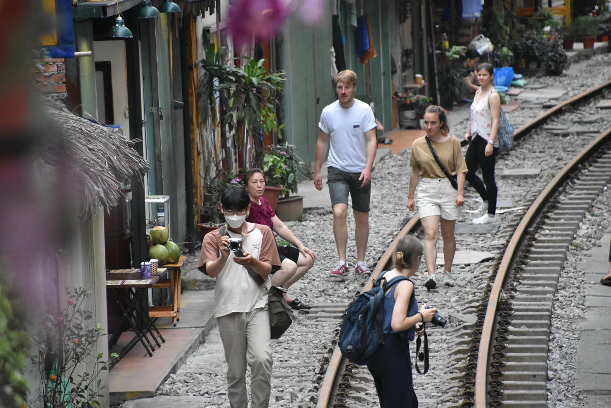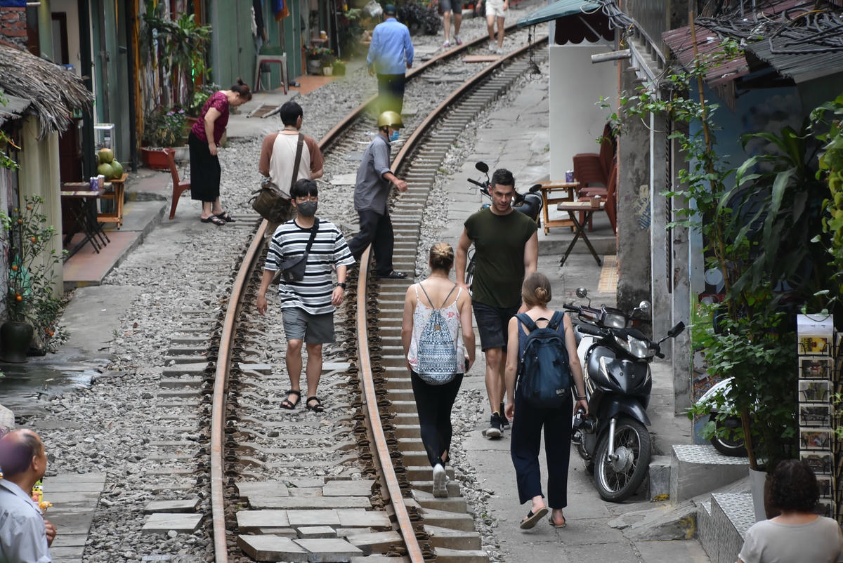 Sau thời gian dài đóng cửa vì dịch bệnh và lệnh cấm vi phạm hành lang an toàn đường sắt, phố cà phê đường tàu tại Hà Nội đã được mở cửa trở lại đón khách.Ghi nhận của PV Đại Đoàn Kết Online, rất đông du khách nước ngoài đã đến tuyến phố cà phê đường tàu để trải nghiệm cảm giác có một không hai tại Thủ đôDu khách tỏ ra thích thú với những hàng quán cà phê nằm ngay sát đường sắt.Chủ một quán cà phê tại đây cho biết, ngay khi mở lại, rất đông du khách đã có mặt tại đây để check-in, chụp ảnh. Việc kinh doanh nhờ vậy mà có phần khởi sắc hơn nhiều. Theo đó, để được kinh doanh trở lại, các hộ kinh doanh phải phải tuân thủ quy định chỉ hoạt động trong nhà, không được lấn chiếm hành lang đường sắt.Cũng theo chủ quán này, những ngày cuối tuần, lượng khách thường tăng lên đột biến do có tàu chạy qua. Khách đến đây chủ yếu là người nước ngoài và các bạn trẻ.Tuyến phố cà phê đường tàu dài khoảng 2km, nối dài từ các con phố Lê Duẩn, Trần Phú, Cửa Đông và Phùng Hưng. Tháng 10/2019, các quán cà phê tại đây đã phải đóng cửa để đảm bảo an toàn hành lang đường sắt.Hai bạn trẻ người Anh mang theo cả máy quay để canh giờ tàu chạy..."Đây là trải nghiệm chưa từng có của chúng tôi. Chúng tôi đã đợi đến cuối tuần để ghi lại cảnh tàu chạy qua trong khi thưởng thức 1 ly cà phê Việt Nam", nữ du khách này cho hay.Hai vợ chồng người Đài Loan này cũng mang theo con nhỏ đến trải nghiệm cà phê đường tàu theo lời review trên mạng. "Cà phê tại đây rất ngon mà giá lại hợp lý. Trải nghiệm vừa uống cà phê vừa nhìn tàu chạy rất thú vị dù chúng tôi có hơi sợ", du khách này cho biết. Tuy vậy, việc du khách tập trung đông, ra giữa đường ray để chụp ảnh, quay phim vẫn tồn tại nhiều rủi ro...