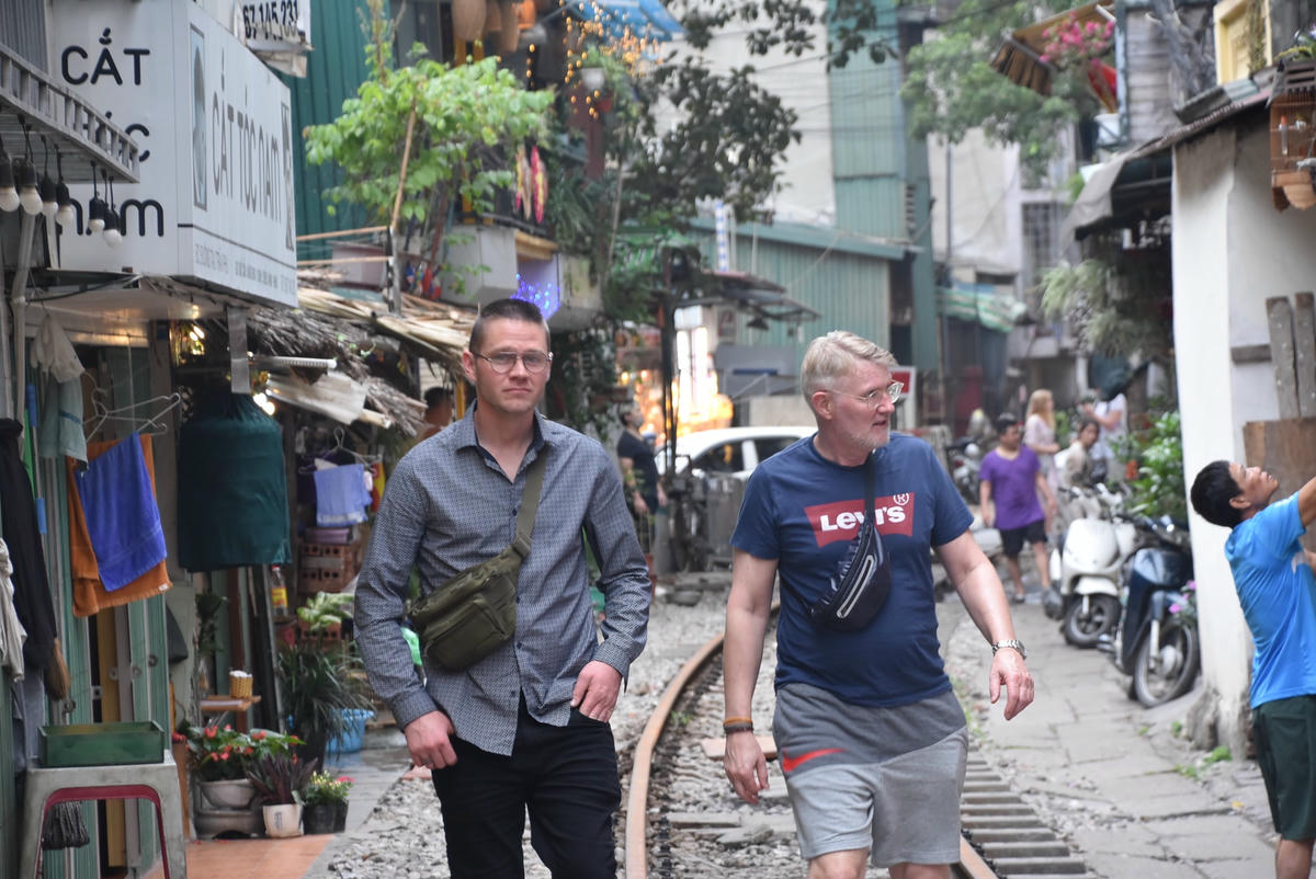 [ẢNH] Khách Tây trầm trồ với trải nghiệm 'cà phê đường tàu' Hà Nội