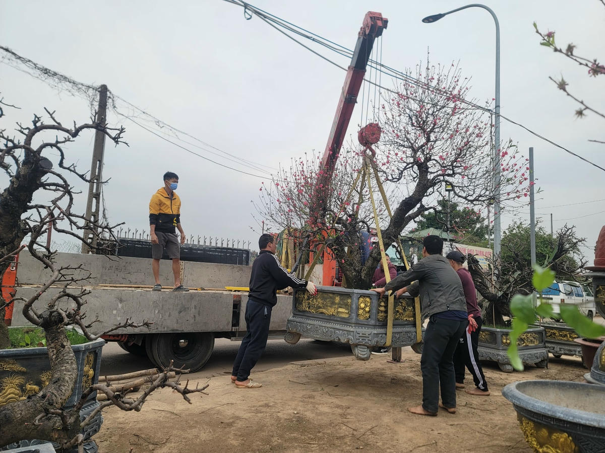 Sau những ngày cho thuê chơi Tết, những cây đào được chủ vườn ở làng đào Nhật Tân đón về nuôi dưỡng, chăm sóc chuẩn bị cho mùa vụ tiếp theo.