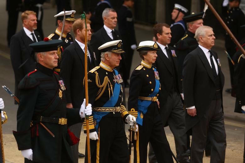 Các nghi thức tang lễ đã bắt đầu vào khoảng 10h35 theo giờ địa phương (khoảng 16h35-17h theo giờ Việt Nam). Linh cữu của Nữ hoàng được di chuyển từ Cung điện Westminster lên linh xa do 98 sĩ quan hải quân kéo. Các thành viên hoàng gia đi sau linh cữu.