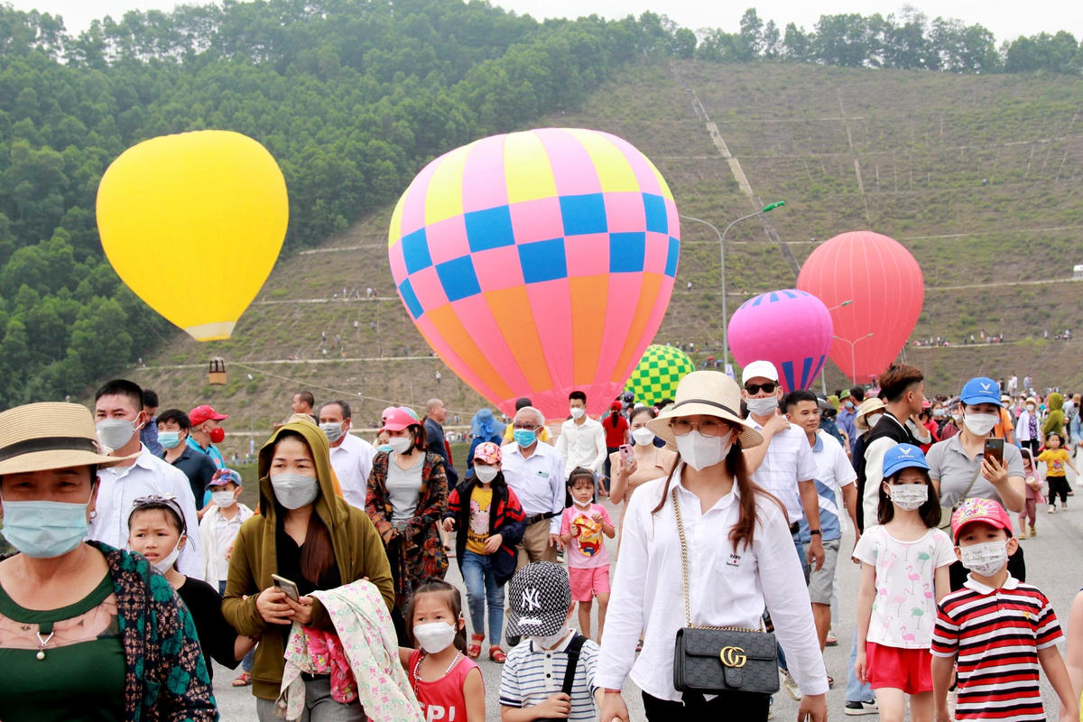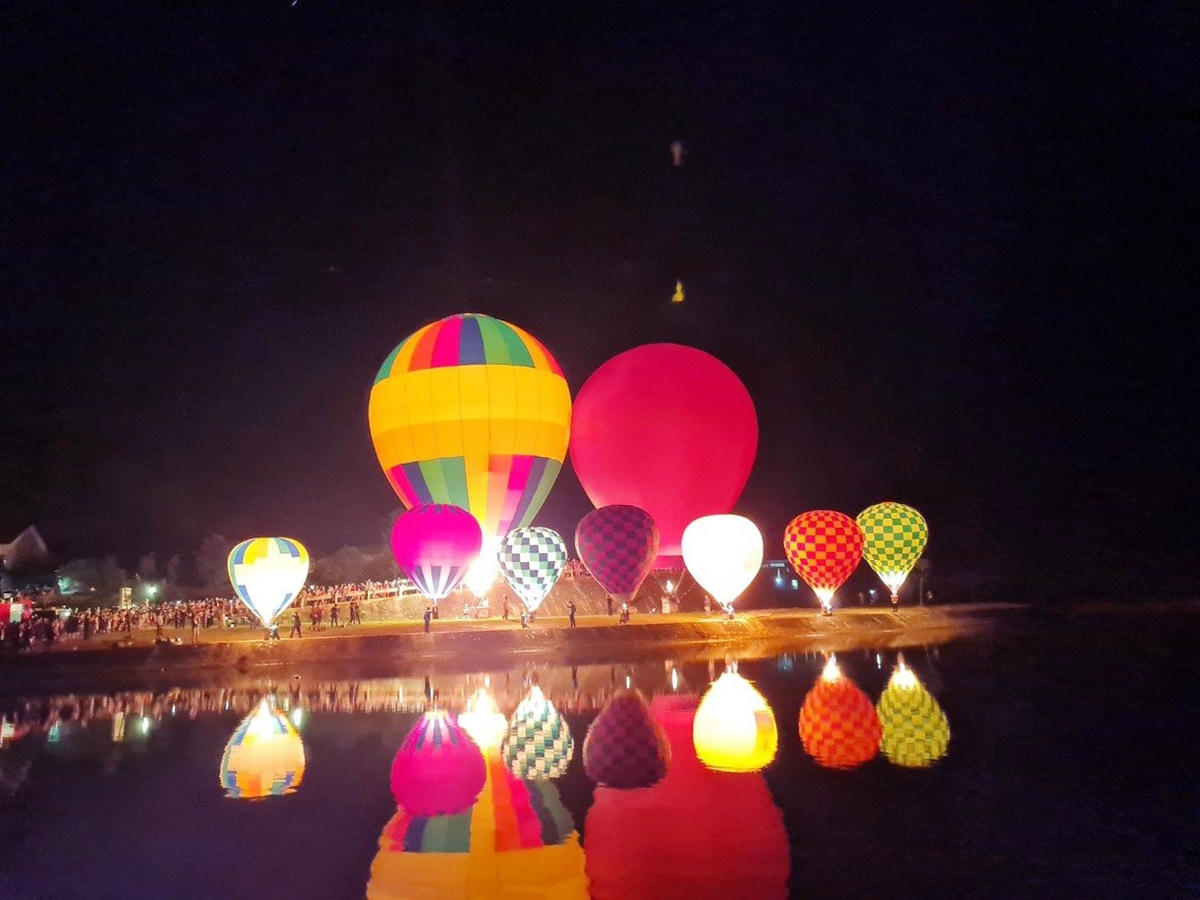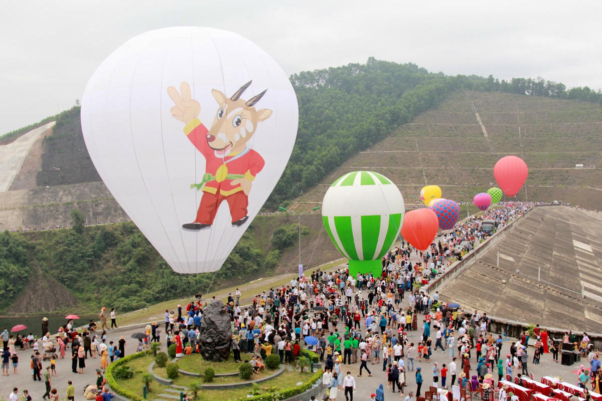 Trước đó (tối 6/5), đêm hội hoa đăng khinh khí cầu đã diễn ra tại khu vực đập Dâng Vũ Quang. 10 quả khinh khí cầu được được thắp sáng tạo nên một bầu không khí lung linh trong đêm thu hút hàng nghìn người dân địa phương đến tham quan, thưởng lãm.