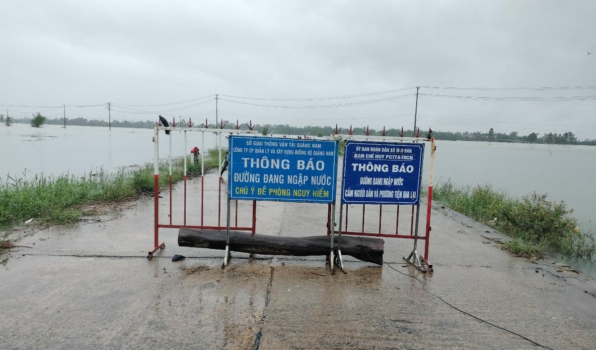 Cạnh đó một số tuyến đường bị nước lũ tràn qua nên bị cơ quan chức năng cấp lưu thông như; ĐT Tuyến ĐT 615, đoạn xã Tam Đàn - xã Tam Thăng, TP Tam Kỳ bị ngập nước sâu gần 1m.