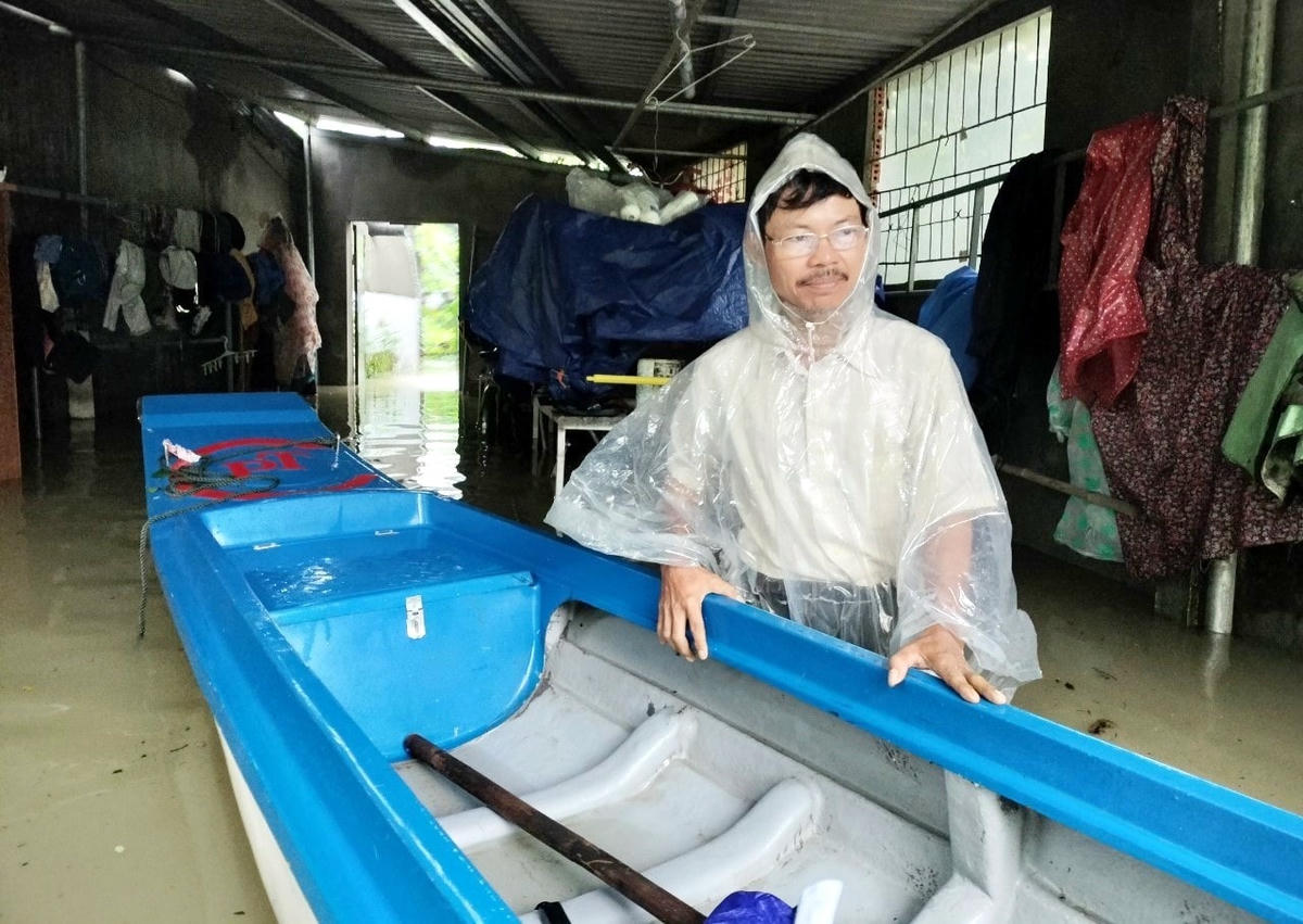 Đang chèo ghe mua đồ ăn cho gia đình, ông Nguyễn Kiều Hưng, ở khối phố Mỹ Thạch Trung chia sẻ: “Nước lũ bắt đầu dâng cao lúc 4h sáng nay đến trưa 15/10, nước tràn ngập vào nhà tôi gần 1m. Tôi đã di dời bàn ghế, đồ đạc trong nhà lên vị trí cao để tránh hư hỏng tài sản. Thế nhưng, đàn gà, vịt nuôi để lo Tết nguyên đán năm 2024 thì bị nước lũ cuốn trôi hết”.