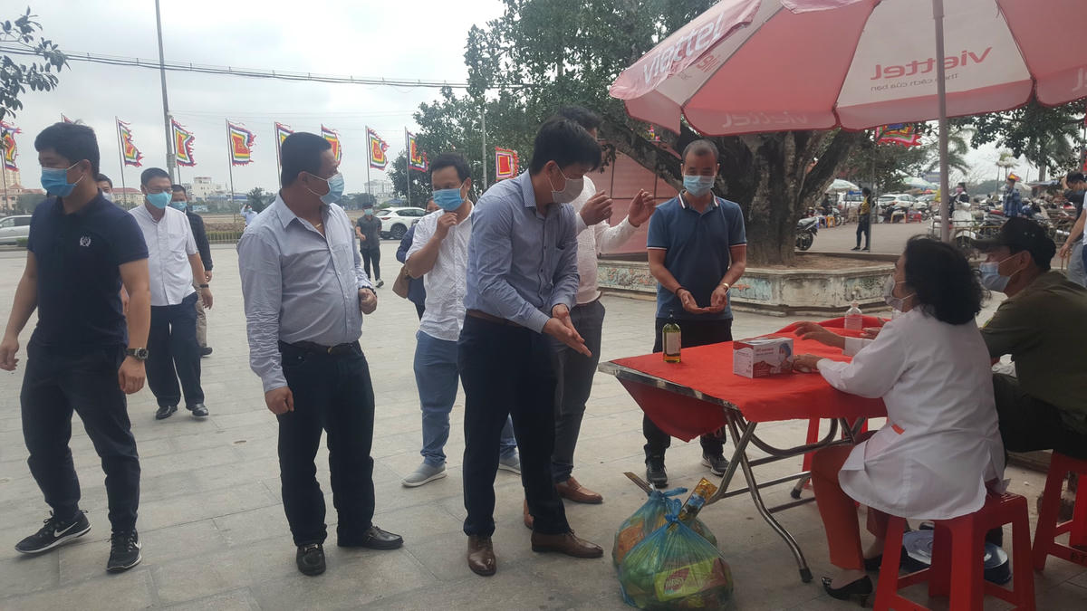 Tại cổng vào đền Trần, nhà chức trách địa phương bố trí nhân viên trực, bàn, nước sát khuẩn, khẩu trang phục vụ khách vào đền. Những người đến đây đều được yêu cầu thực hiện sát khuẩn tay, ai chưa đeo khẩu trang được yêu cầu thực hiện. Ngoài ra, các khuyến cáo phòng chống dịch của Bộ Y tế (phương châm 5 K) cũng được Ban quản lý khu di tích liên tục tuyên truyền nhắc nhở trên loa phát thanh, ghi trên áp-phíc…