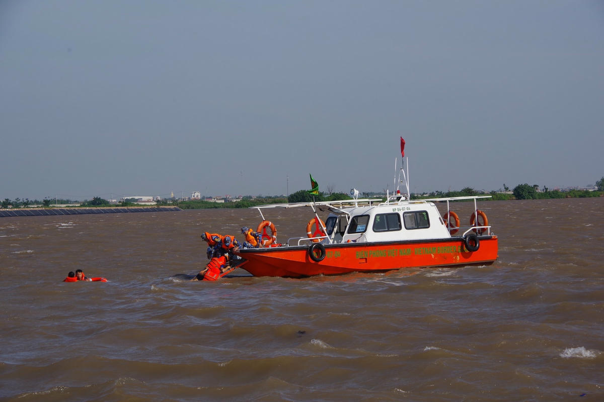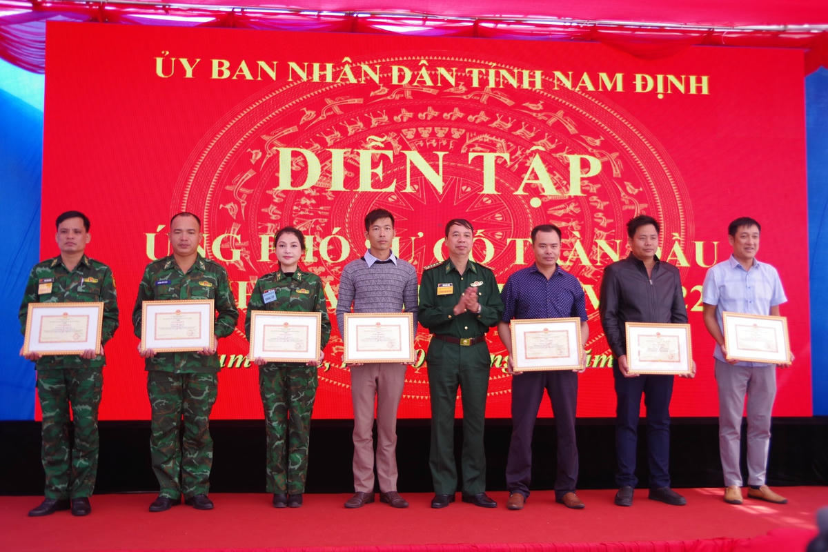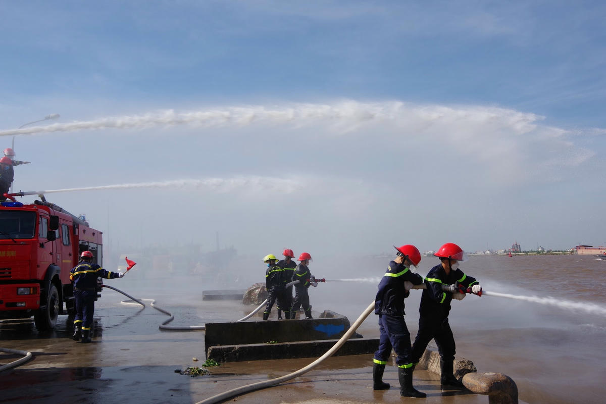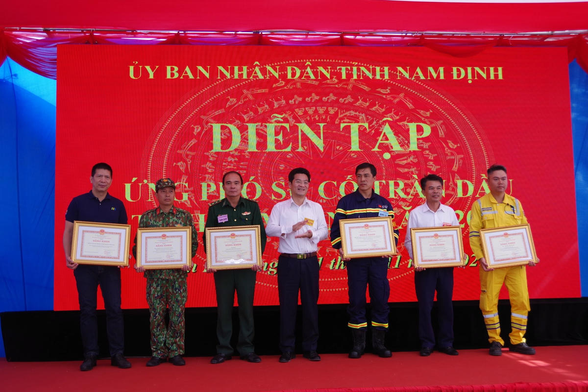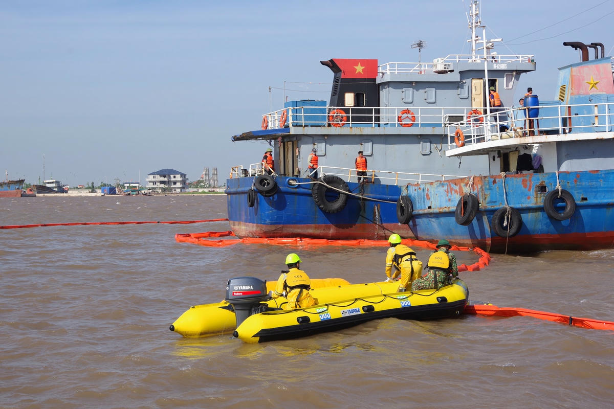 Đưa ra một tình huống giả định cụ thể một tàu chở dầu bị thủng vỏ, tràn dầu trên khu vực cửa sông, Nam Định huy động hơn 200 người thuộc nhiều lực lượng diễn tập cứng cứu…
