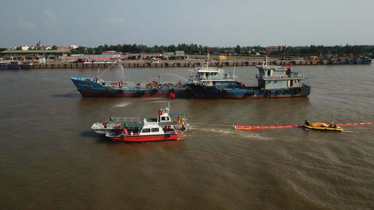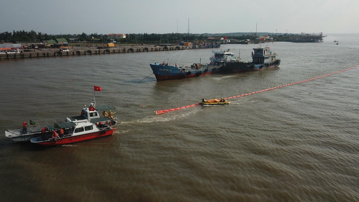 Theo đó, ngay sau khi nhận được thông tin về sự cố, cơ chế phối hợp chỉ đạo, điều hành, phối hợp giữa các lực lượng chức năng đã được “kích hoạt”. Các lực lượng chức năng đã khẩn trương huy động lực lượng, phương tiện, phối hợp triển khai các biện pháp tìm kiếm cứu nạn; phòng, chống cháy, nổ; dùng phao quây dầu; tổ chức phun sinh phẩm khử độc do tràn dầu ở vùng biển, vùng đường bờ; thu gom toàn bộ lượng dầu tràn, bảo đảm đúng kỹ thuật và vận chuyển đi xử lý đúng nơi quy định…