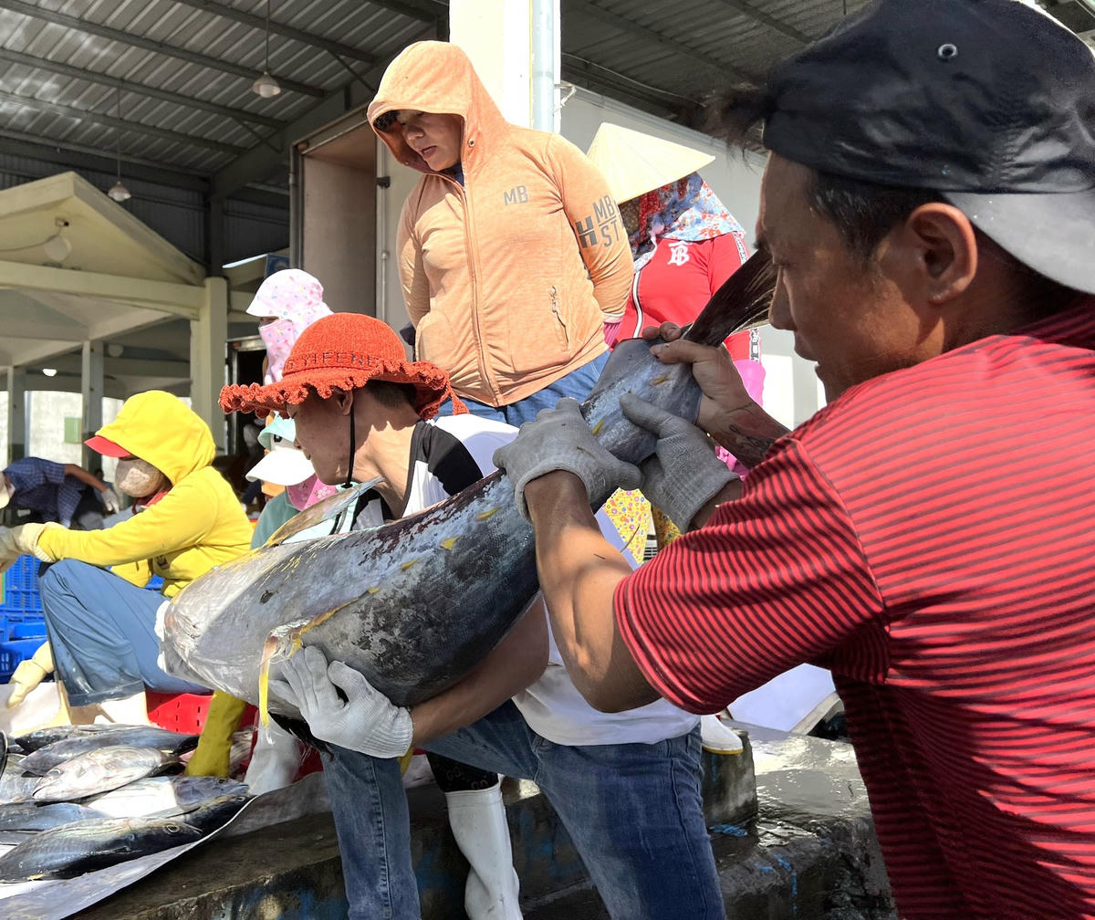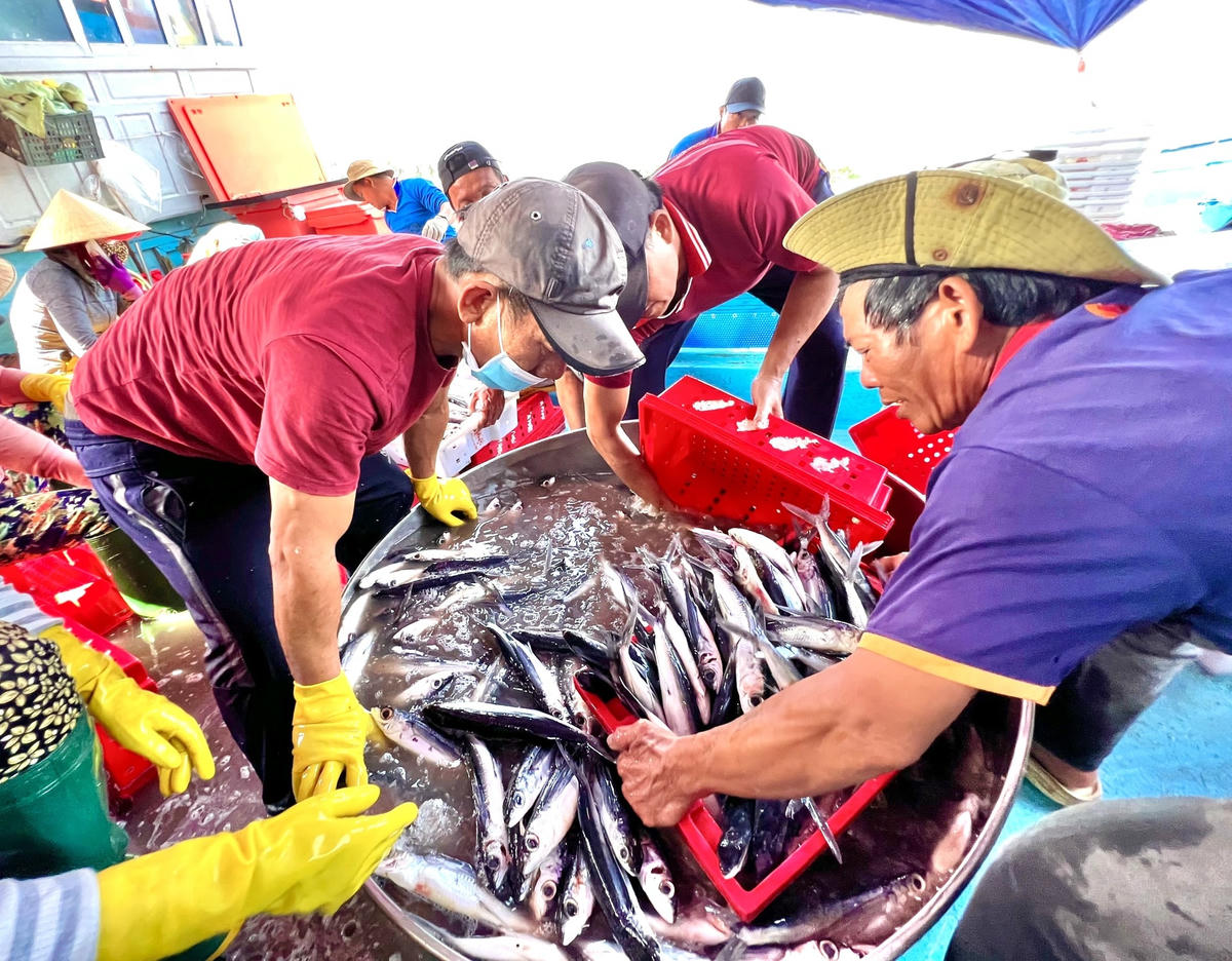 Ngày 8/2, ghi nhận của PV Báo Đại Đoàn Kết tại cảng cá Sa Kỳ, xã Bình Châu, huyện Bình Sơn, cảng cá Tịnh Hòa, TP Quảng Ngãi, thuộc tỉnh Quảng Ngãi, nhiều tàu cá đánh bắt xuyên Tết đã cập cảng các khoang tàu đầy ắp các loại cá. Nơi đây tràn ngập tiếng cười nói, vui vẻ của nhân công, ngư dân. Họ phấn khởi với chuyến biển đầu năm mới bội thu.