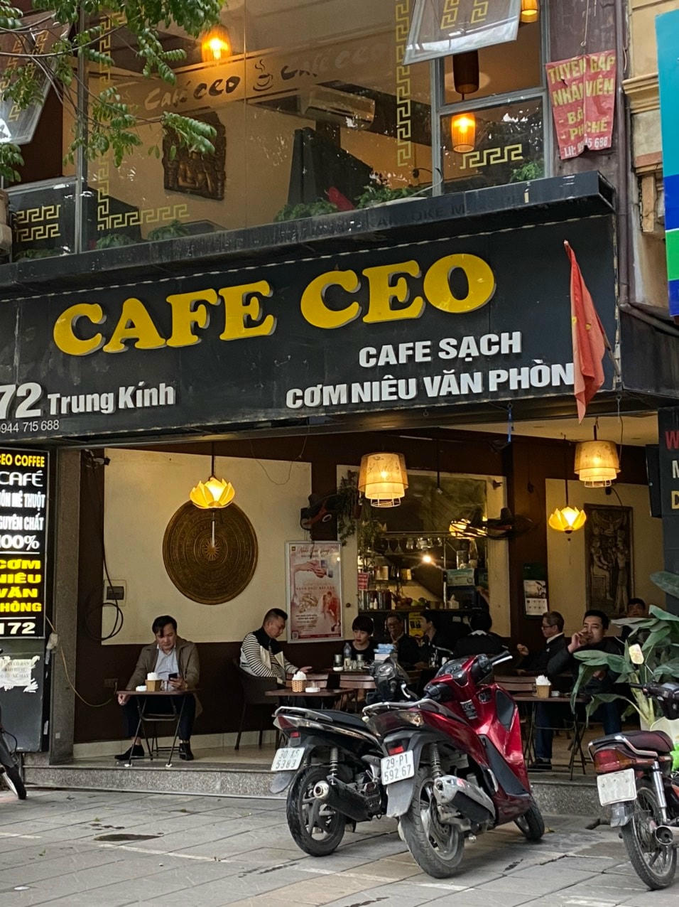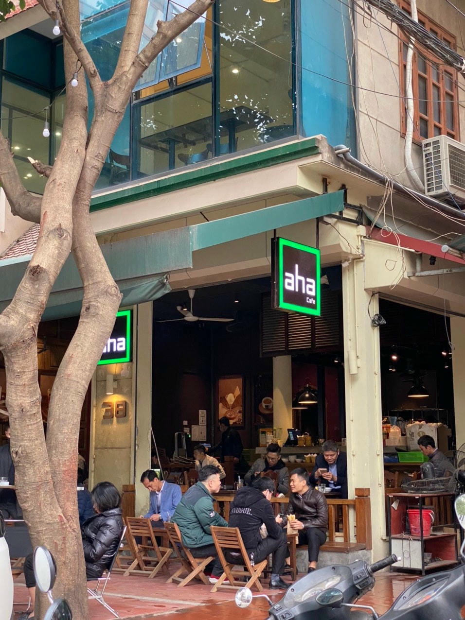 Quán cafe AHA ở đường Trung Kính mở cửa trở lại đón khách từ 7h30. Ảnh: Lan Anh. Quán cafe AHA bên phía đường Duy Tân cũng đã rất đông khách từ 8h00 sáng nay. Ảnh: Lan Anh. Các quán cafe The Coffee House đồng loạt mở cửa trở lại. Ảnh: Lan Anh. Một quán cafe trên đường Duy Tân không khí rất nhộn nhịp. Ảnh: Lan Anh.Quán trà trên đường Trần Đăng Ninh mở cửa đón khách từ sớm. Ảnh: Lan Anh."Phố cafe" ở ngõ 1 Trần Thái Tông trở lại không khí thường ngày. Ảnh: Lan Anh. Các biển hiệu quán cafe cùng sáng đèn. Ảnh: Lan Anh.