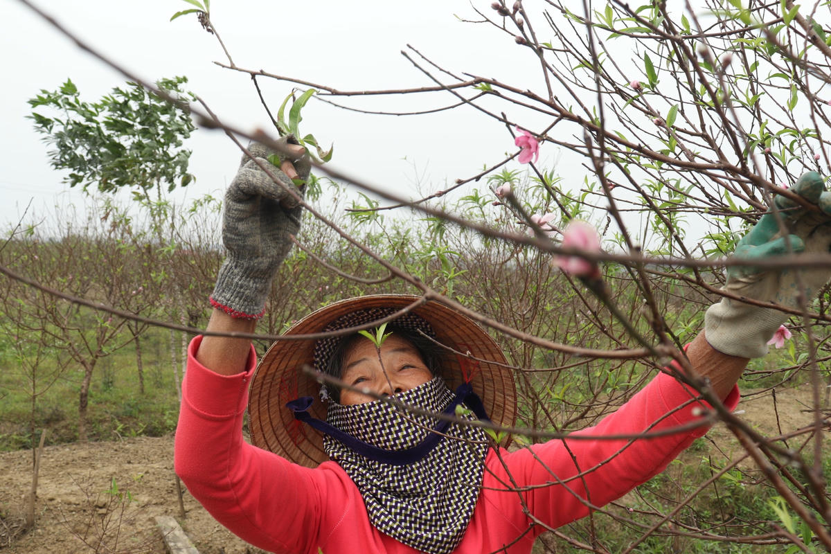 Được coi là thủ phủ đào phai xứ Thanh, ở xã Xuân Du (huyện Như Thanh) có tới 1.600 hộ dân tham gia trồng đào trên diện tích gần 300 ha đất. Từ trồng cho vui để chơi Tết, đến nay, loại cây cảnh này được xem là nguồn thu nhập chính của nhiều gia đình, nhiều hộ giàu lên, có đời sống khấm khá cũng nhờ cây đào. Thời điểm cận Tết, không khí làm việc tại xã Xuân Du trở nên khẩn trương hơn bao giờ hết khi ở khắp mọi cánh đồng, người dân đang xuống lá chăm sóc đào để bán dịp Tết. Qua trao đổi với một số hộ dân, họ tỏ ra khá lo lắng khi thời tiết năm nay ấm hơn mọi năm khiến hoa đào bung nở sớm, tiềm nguy cơ đào nở rộ quá sớm khi mà Tết đang còn tới hơn 30 ngày.Gương mặt chất chứa đầy sự lo lắng, bà Nguyễn Thị Nghĩa (63 tuổi, trú thôn 8, làng Trường Sơn, xã Xuân Du) cho biết, năm nay, gia đình bà trồng 500 gốc đào nhưng mất tới 1/3 số cây hiện đã nở hoa."Năm ngoái thời tiết đẹp, đào đến cận Tết vẫn chưa bung hoa nên thương lái vào mua tận vườn, tôi bán đâu đó cả trăm cây, lãi cũng được vài chục triệu đồng. Năm nay, tiết trời ấm áp, hoa đào bung nở sớm khiến dân tình cực kỳ lo lắng, vì nếu cứ tiếp diễn như vậy thì cả vườn đào nhà tôi sẽ nở rộ hết, lúc đó bán cũng chẳng ai mua", bà Nghĩa nói.Bà Nghĩa mong muốn thời gian tới, tiết trời rét kéo dài để đào không thể nở hoa, từ đó có thể bán cây vào đúng dịp cận ngày Tết.Ông Quách Văn Hùng (58 tuổi, trú thôn 5 xã Xuân Du) cho biết, nhà ông trồng gần 1.000 cây đào trên diện tích 6 sào đất. “Từ đây đến Tết, nếu trời không rét sâu thì nguy cơ người trồng đào mất Tết”, ông Hùng nóiĐồng quan điểm với ông Hùng, anh Lê Văn Tuấn chia sẻ, nhà anh có 8 sào đất trồng đào, tuy nhiên chưa năm nào anh thấy thời tiết lại khắc nghiệt như năm nay. "Với diện tích như nhà tôi, trung bình dịp Tết hàng năm, trừ mọi chi phí gia đình cũng thu về khoảng 70 đến 100 triệu đồng. Tuy nhiên, năm nay, đào nở thành nhiều đợt và nở quá sớm. Từ đây đến Tết còn hơn một tháng, nếu cứ tiếp diễn như vậy thì đúng là không còn cây nào để bán”, anh Tuấn nóiTheo người dân địa phương, bằng giờ năm ngoái đã có thương lái đến xem cây. Nhưng năm nay,, thương lái trông thời tiết, thấy hoa sẽ nở sớm nên họ dè chừng, có lẽ, phải chờ đến sát Tết họ mới đến xem.Ông Bùi Đức Chính, Phó chủ tịch UBND xã Xuân Du cho biết, diện tích trồng đào ở địa phương là 280ha, đây là cây chủ lực phát triển kinh tế của cả xã.Theo Phó chủ tịch UBND xã Xuân Du, việc đào nở sớm năm nay là hiện tượng hiếm gặp so với mọi năm. Việc đào nở sớm cũng khiến chính quyền địa phương lo lắng khi ở xã có hàng nghìn hộ dân tham gia trồng đào.“Đào năm nay nở sớm do thời tiết nắng nóng kéo dài. Tuy nhiên, vẫn có nhiều gốc đào đẹp mới nụ mới ló. Thời tiết từ đây đến Tết mà lạnh thì hoa vẫn nở đúng Tết”, ông Chính nhận định.