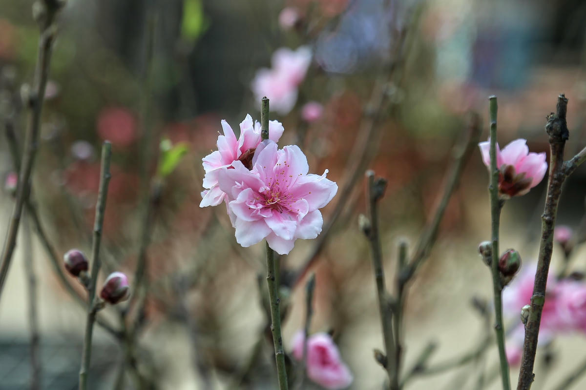 Dù còn hơn 1 tháng nữa mới đến Tết Nguyên đán, nhưng những cành hoa đào đã được bày bán sớm tại chợ hoa Quảng Bá thu hút người dân đến tìm mua.