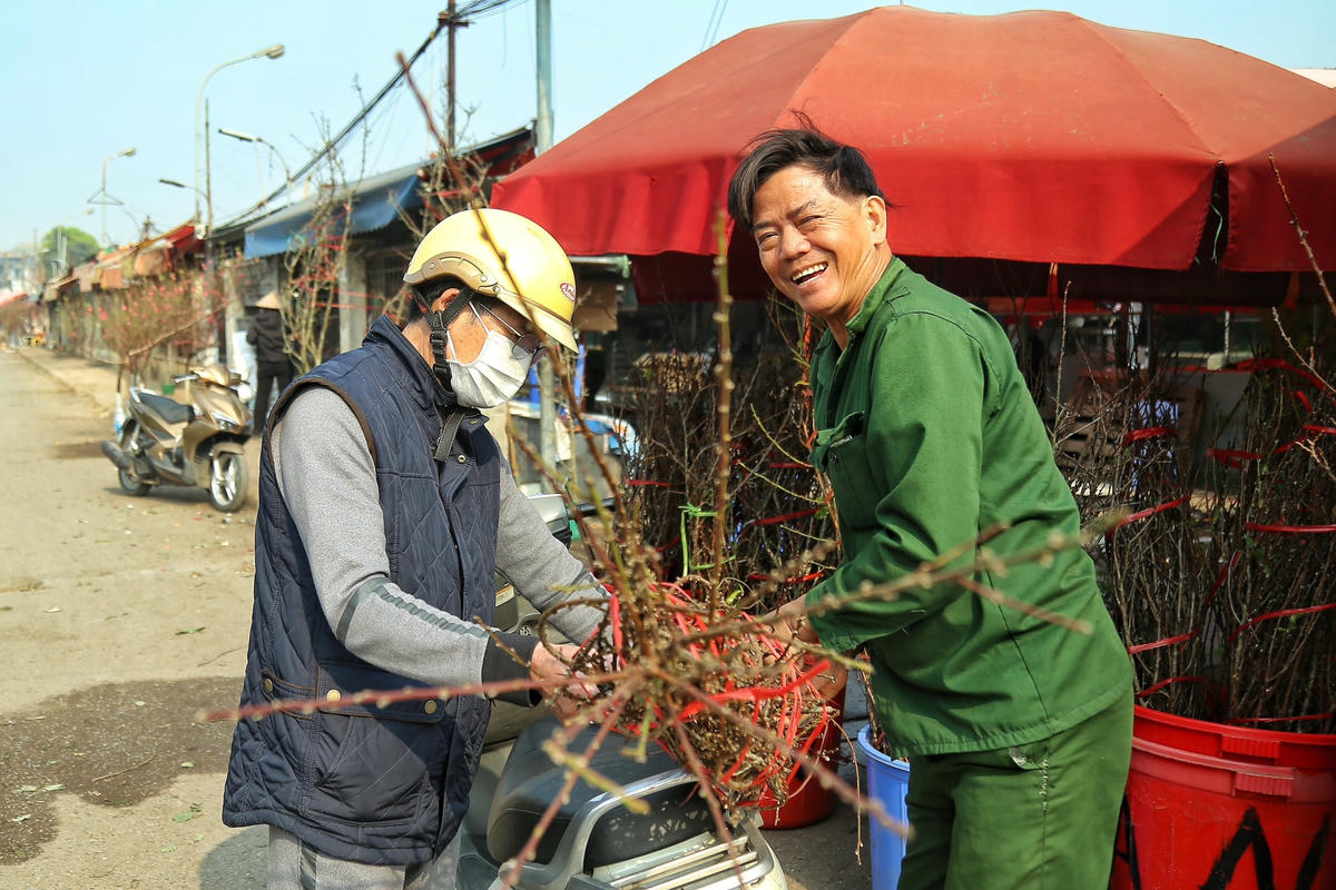 Theo ghi nhận, những ngày gần đây, các tiểu thương tại chợ hoa Quảng Bá (quận Tây Hồ) đã bắt đầu bày bán hoa đào dù còn hơn 1 tháng nữa mới đến Tết Nguyên đán Quý Mão 2023. Song, các khu bán hoa đào luôn thu hút được nhiều người dân tìm tới.Một số tiểu thương tại đây chia sẻ, năm nay do thời tiết ấm lạnh đan xen nên hoa đào đầu mùa đã nở bung. Bên cạnh đó, bán hoa đào sớm nhằm đáp ứng nhu cầu của người dân mua về trang trí nhà cửa.Do đào đầu mùa nên giá bán mỗi cành dài từ 1 m đến hơn 2 m có giá từ 500.000 - 700.000 đồng/cành; cành nhỏ từ 50 - 80 cm giá bán từ 100.000 - 200.000 đồng/cành tùy thế cành và lượng hoa.Theo tìm hiểu, phần lớn hoa đào được bày bán sớm đều được nhập từ làng đào Nhật Tân, thời tiết không quá lạnh cũng là điều kiện để hoa nở sớm.Hàng dài những cành hoa đào được bày bán tại chợ Quảng Bá đã đưa không khí Tết đến gần hơn.Ông Nguyễn Huy Mạnh, trú tại Thanh Xuân, Hà Nội chia sẻ: “Nay có việc đi qua đê Âu Cơ thấy người dân bày bán nhiều cành đào rất đẹp nên tôi dừng lại lựa chọn một số cành để về trưng bày nhà cửa. Là một người thích hoa đào và muốn tận hưởng không khí Tết sớm nên tôi mua 4 cành đào để tặng thêm bạn bè, người thân”.Với mỗi cành đào nhỏ này, các tiểu thương bán với giá từ 120.000 - 170.000 đồng/cành.Do hiện đào đầu mùa nên giá vẫn còn khá đắt đỏ.Dù giá khá cao nhưng người mua đa phần đều vui vẻ lựa chọn những cành đào ưng í nhất để mang về trang trí.Các tiểu thương chăm sóc những cành đào thật cẩn thận để đến tay khách hàng được tươi, đẹp nhất.