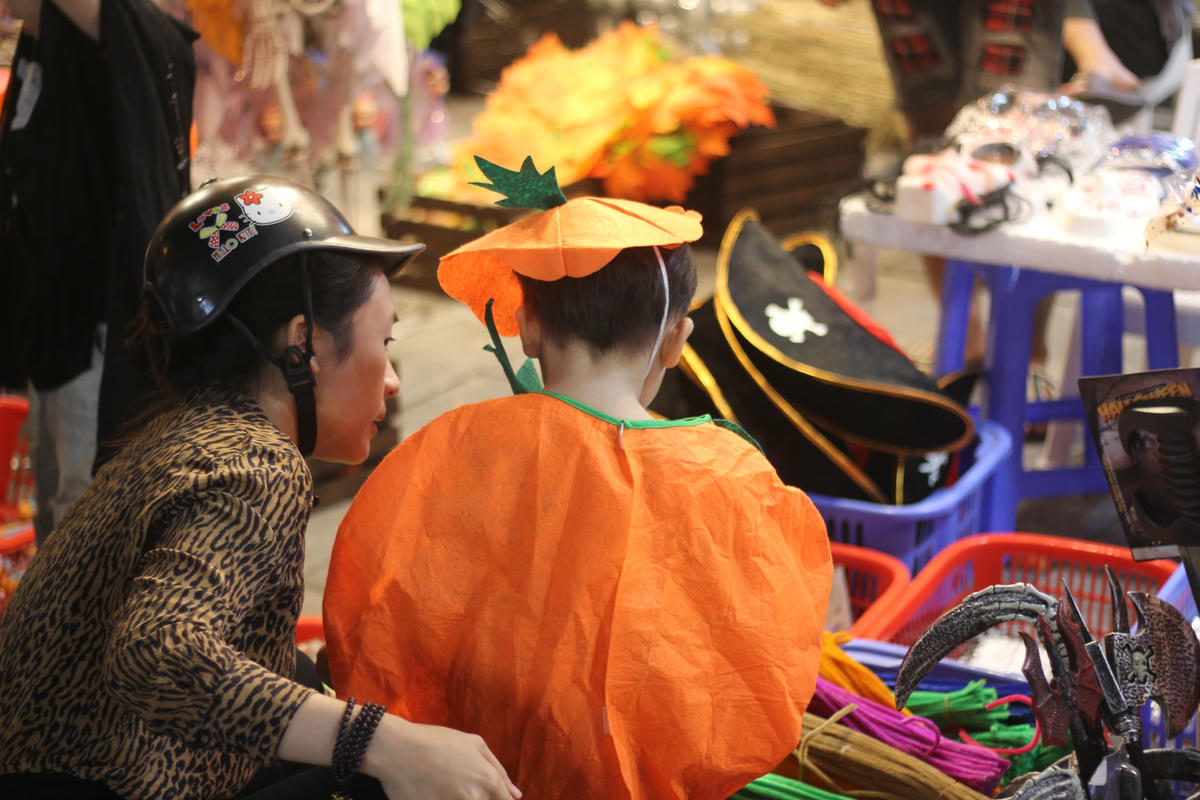 Tối 31/10, hưởng ứng không khí của lễ hội hóa trang (Halloween), nhiều người dân Hà Nội thay đổi "giao diện" độc lạ cùng nhau xuống phố.