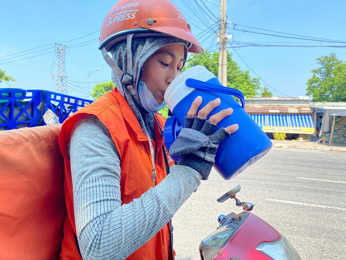 Còn anh Nguyễn Thanh Tĩnh, hành nghề vận chuyển hàng hóa ở TP Tam Kỳ cho biết: “Trời nắng nóng quá nên mỗi ngày tôi chỉ chở được 2 chuyến hàng kiếm được 400 ngàn đồng. Thế nhưng công việc phải lao động ngoài trời nên tôi đành chấp nhận. Mỗi khi chạy xe trên đường tôi mặc áo khoác, đeo găng tay, khẩu trang nhưn vẫn nóng rát cả mặt. Nếu người nào sức khỏe yếu thì rất dễ bị ngất xỉu”.