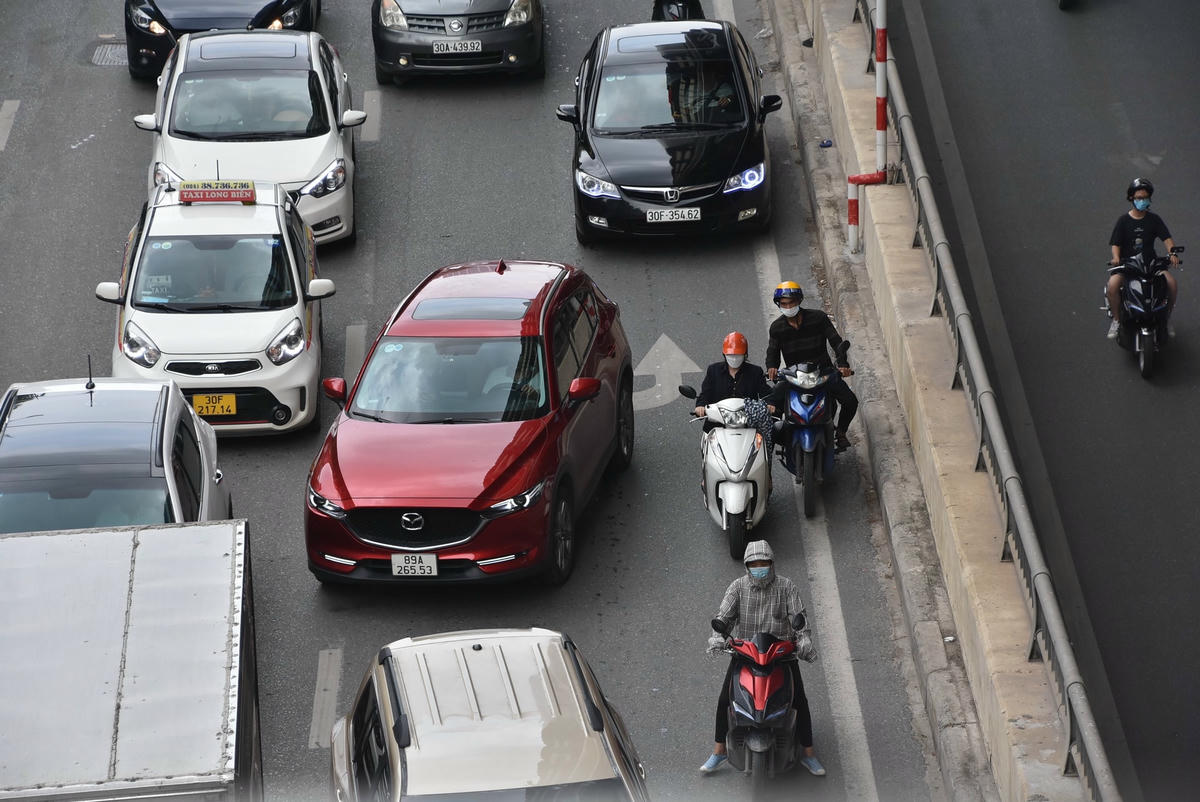 [ẢNH] Phương tiện giao thông hỗn loạn, 'lấn lướt' nhau trên đường Nguyễn Trãi