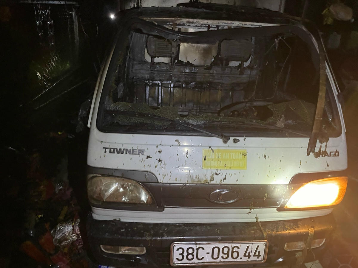 Toàn bộ hàng hóa trong quán tạp hóa của gia đình anh Hoàng Văn Tuấn đã bị “bà hỏa” thiêu rụi. Chiếc xe tải dùng để chở hàng cũng cháy đen, hư hỏng hoàn toàn.