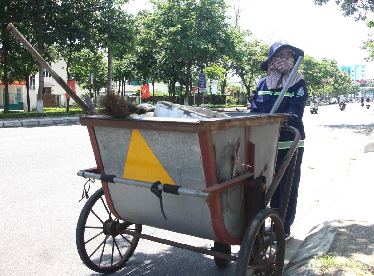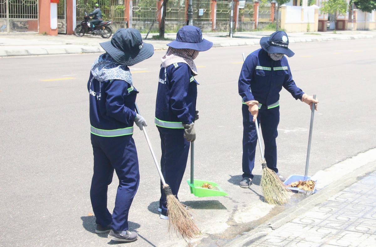[Ảnh] Quảng Nam: Công nhân môi trường đô thị bất chấp trời nắng nóng làm sạch đường phố