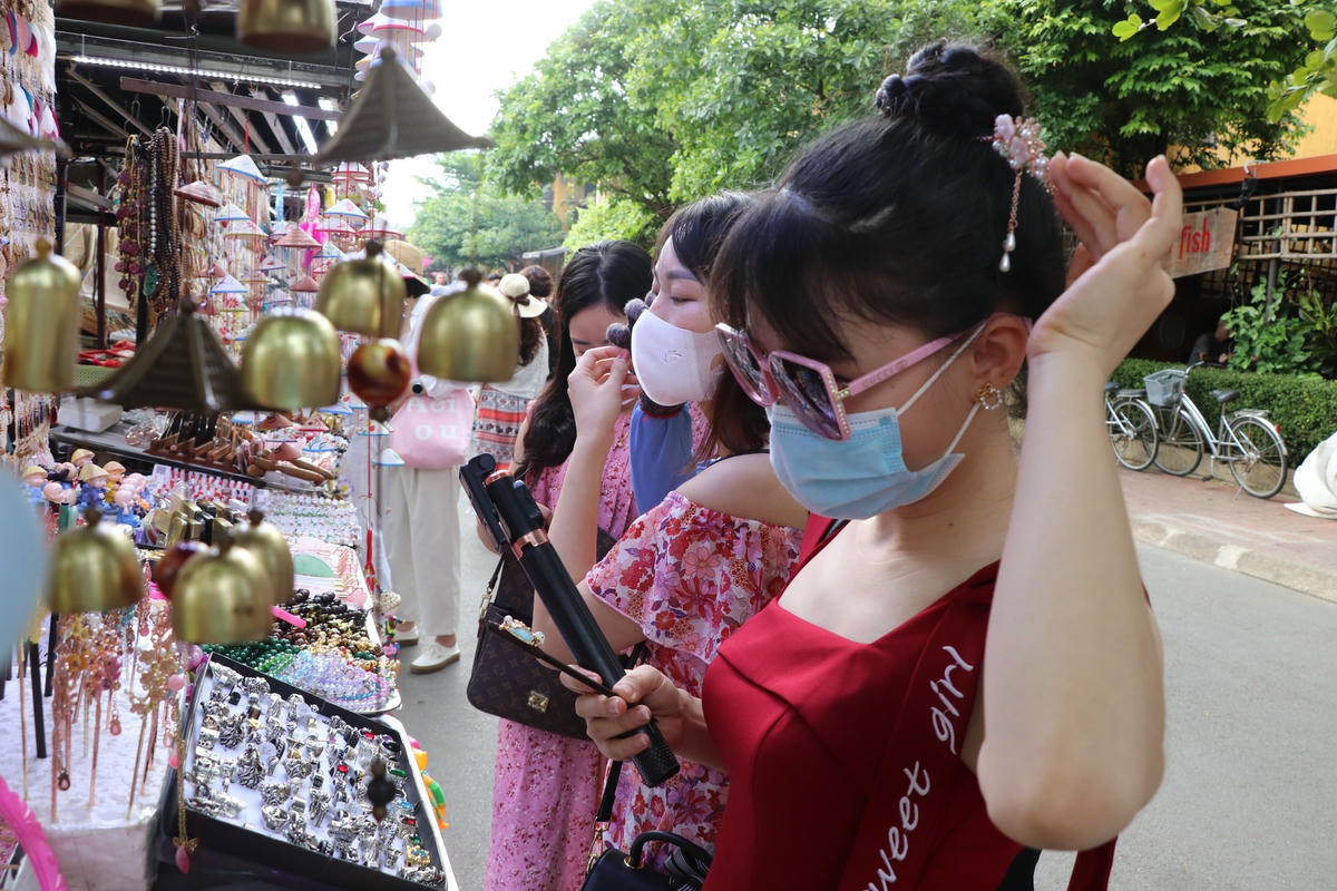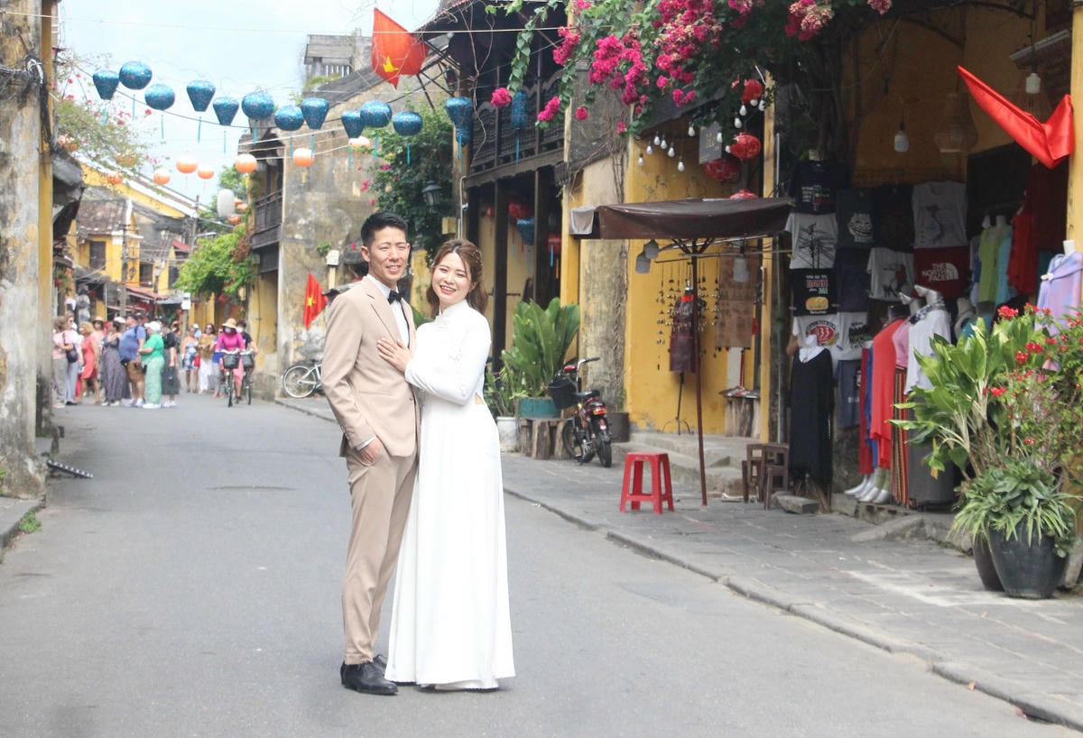 Ghi nhận của chúng tôi, chiều 1/5, tại TP Hội An trời mát mẻ có rất đông du khách trong nước và nước ngoài đi tham quan, chụp ảnh lưu niệm trên các tuyến đường Hai Bà Trưng, Bạch Đằng, Nguyễn Thái Học, Trần Phú;… hoặc các địa điểm nổi tiếng khác như: Cầu An Hội, Chùa cầu Hội An để chụp ảnh, check in.