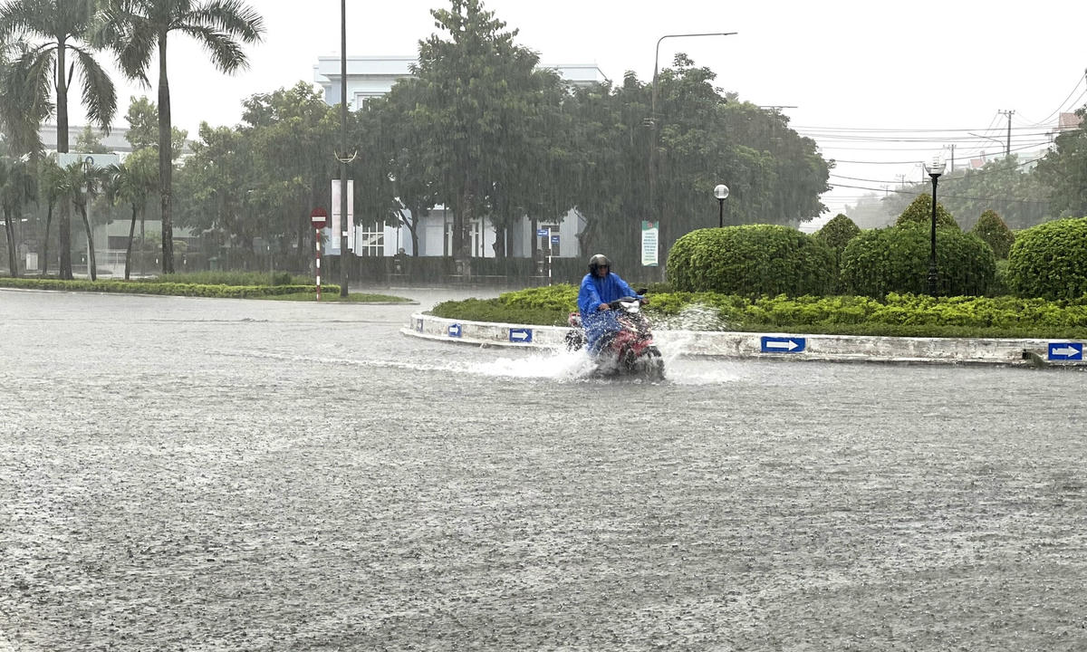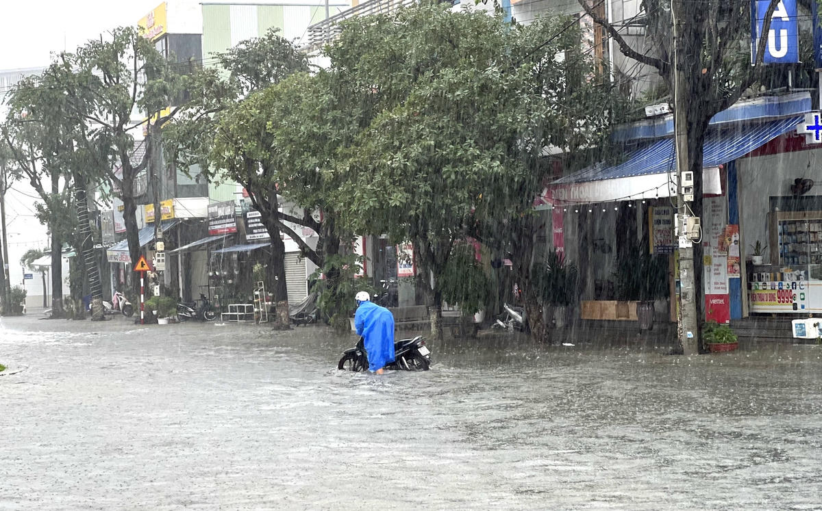 Mưa lớn kéo dài từ tối 14 đến chiều 16/10 khiến nước mưa không kịp thoát, nhiều tuyến đường trên địa bàn TP Tam Kỳ, tỉnh Quảng Nam bị ngập sâu gây khó khăn cho các phương tiện lưu thông.