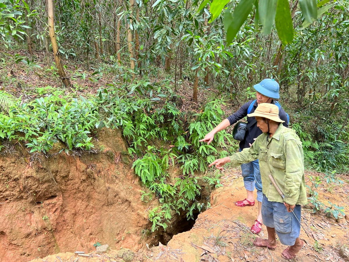 Qua kiểm tra thực tế các vết nứt tại núi Cà Mon, ông Phạm Xuân Vinh, Chủ tịch UBND huyện Ba Tơ cho biết, đây là vết nứt tương đối rộng, chỗ sâu nhất gần 7m và đang có hiện tượng mở rộng, kéo dài nên rất nguy hiểm, khả năng gây sạt lở rất cao.