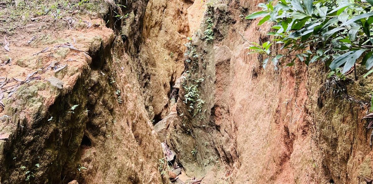 Ghi nhận thực tế của chúng tôi tại núi Cà Mon hiện có 3 vết nứt rất lớn, nguy cơ xảy ra sạt lở rất cao. Thực tế tại hiện trường các vết nứt kéo dài cả chục mét với độ sâu từ hơn 1 đến 7m, nên việc di dời, tái định cư cho các hộ dân nơi đây là rất cấp thiết.