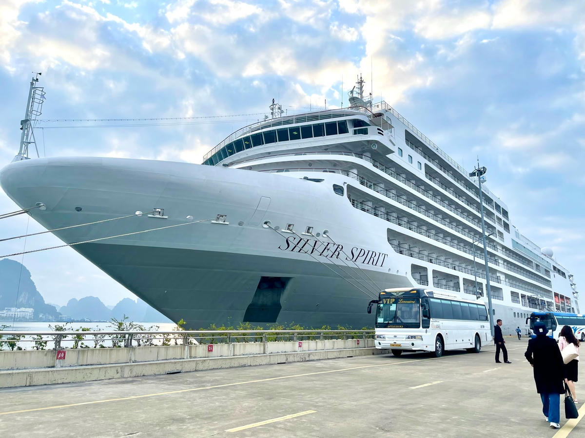 Tàu biển Quốc tế Silver Spirit chở theo hơn 250 khách đến từ nhiều quốc gia khác nhau, xuất phát từ Hồng Kông (Trung Quốc) và cập Cảng tàu khách Quốc tế Hạ Long vào ngày 21/1. Quảng Ninh chính là điểm đến đầu tiên trong hải trình của Tàu biển Quốc tế Silver Spirit trong dịp đầu xuân năm mới.Sáng ngày 22/1, 150 khách du lịch từ Tàu biển Quốc tế Silver Spirit sẽ thực hiện hành trình đi tham quan di sản Vịnh Hạ Long.Lãnh đạo tỉnh Quảng Ninh tặng hoa chúc mừng các vị khách “xông đất” trong ngày đầu năm mới.Các vị khách quốc tế rất phấn khởi khi nhận được sự tiếp đón nồng hậu đến từ tỉnh Quảng Ninh.Quảng Ninh chào đón các vị khách du lịch tàu biển đầu tiên của năm Quý Mão trong không khí tươi vui, rộn ràng, đầy khí thế.Đây cũng là hoạt động thường niên bày tỏ sự tri ân những tình cảm của khách du lịch dành cho Quảng Ninh.Những vị khách đến từ Hàn Quốc “check in” trước khi lên tàu đi tham quan Vịnh.Du khách bày tỏ sự thích thú và mong chờ chuyến tham quan di sản Vịnh Hạ Long.