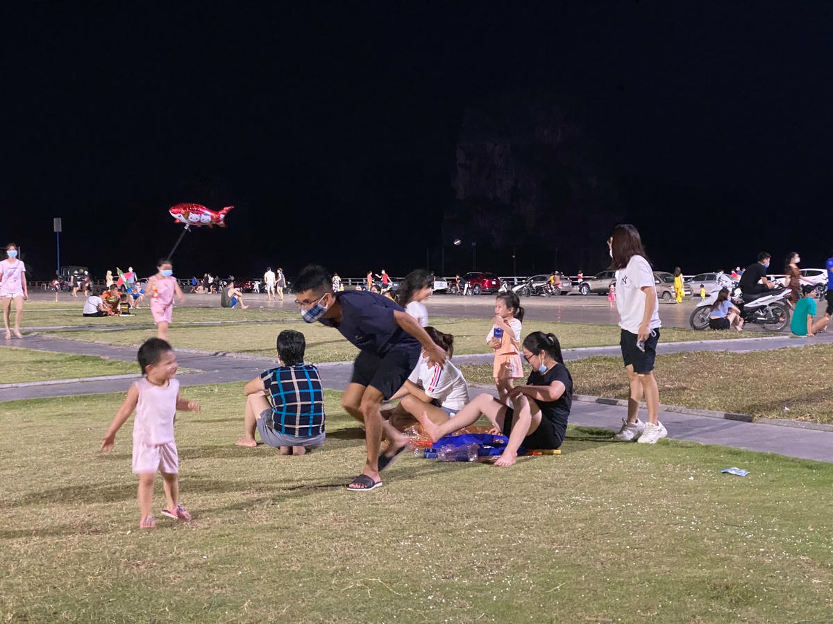 Tối ngày 1/6, tại Quảng trường 30/10, thành phố Hạ Long, tỉnh Quảng Ninh, rất đông người dân vẫn đi tập thể dục, thả diều và vui chơi bất chấp lệnh cấm tụ tập đông người tại khu công cộng.